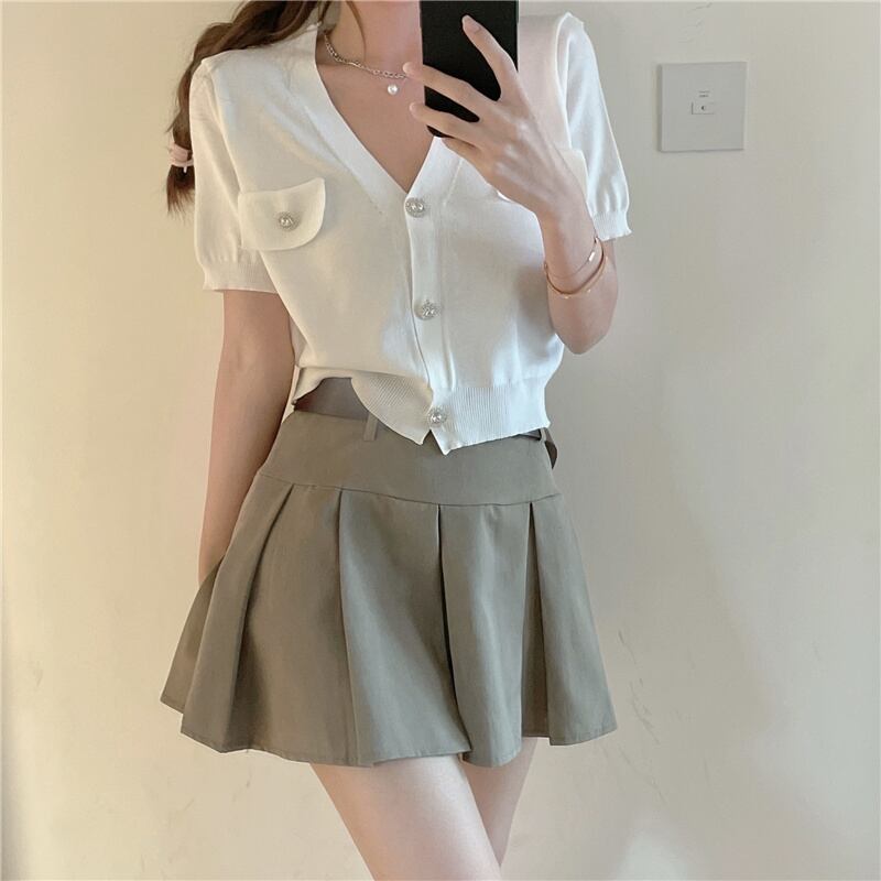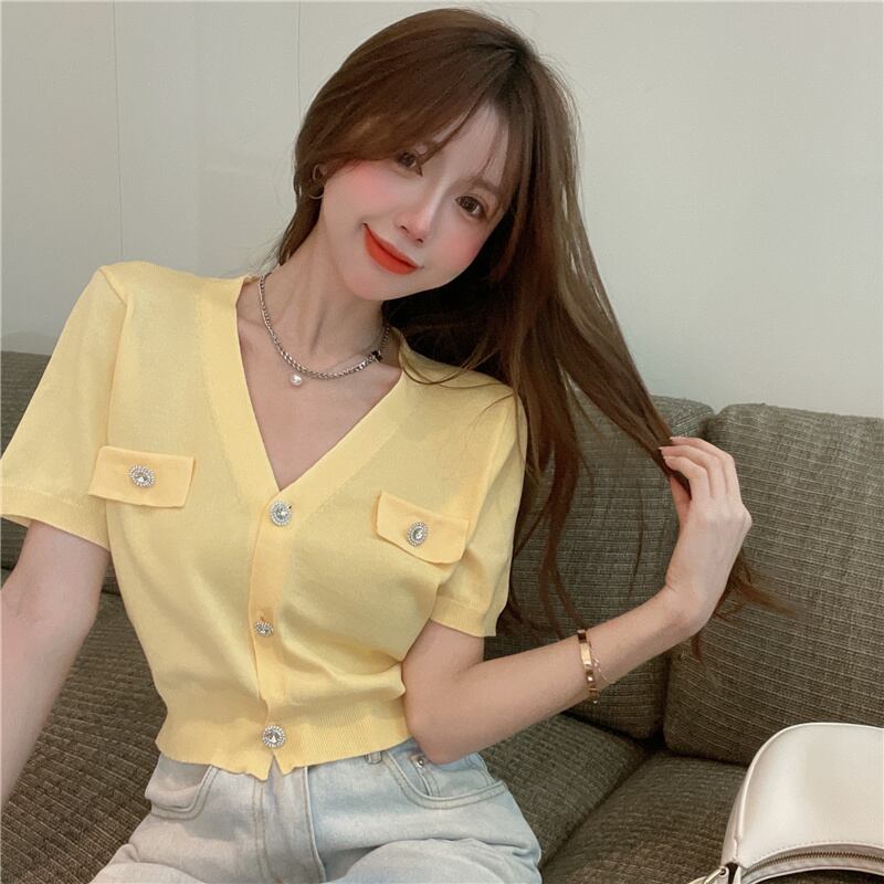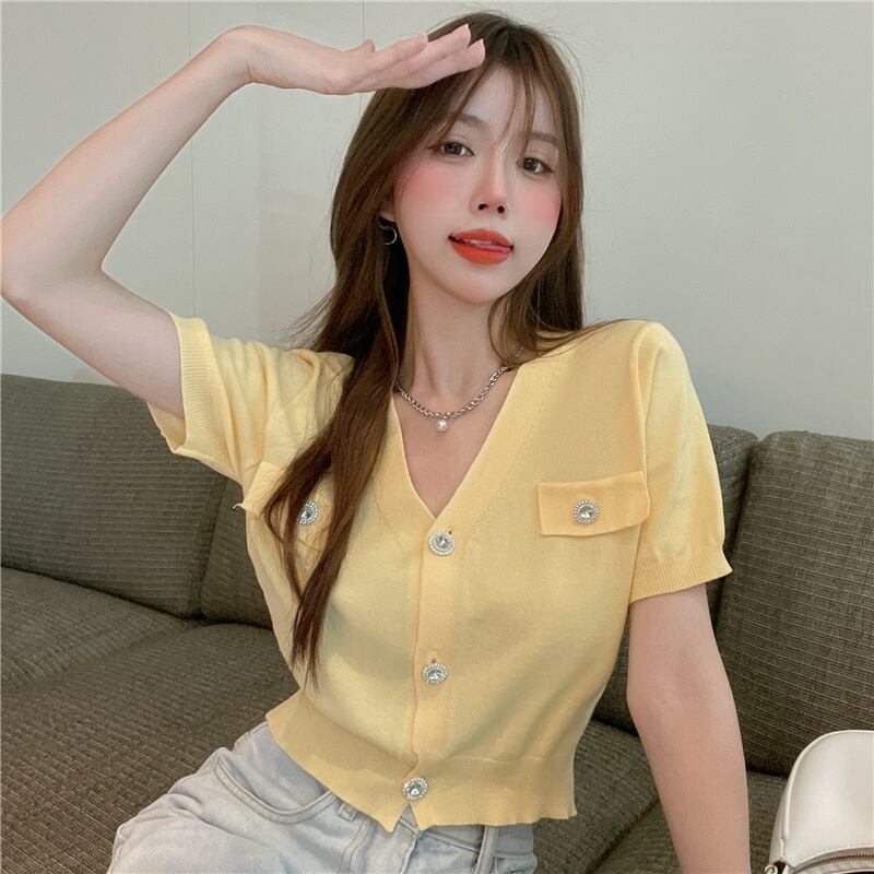 カーディガンサマー薄手ショートVネックセーター トップス コート 夏物 シルク セブンプリンセス65617414685