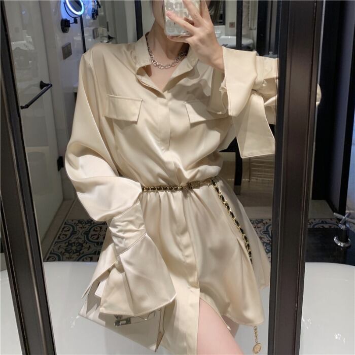 スタンダード薄手シャツ レディースサマールーズジャケット ウェストトップス ロング レトロ 夏物 セブンプリンセス8217575333