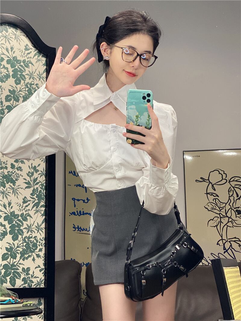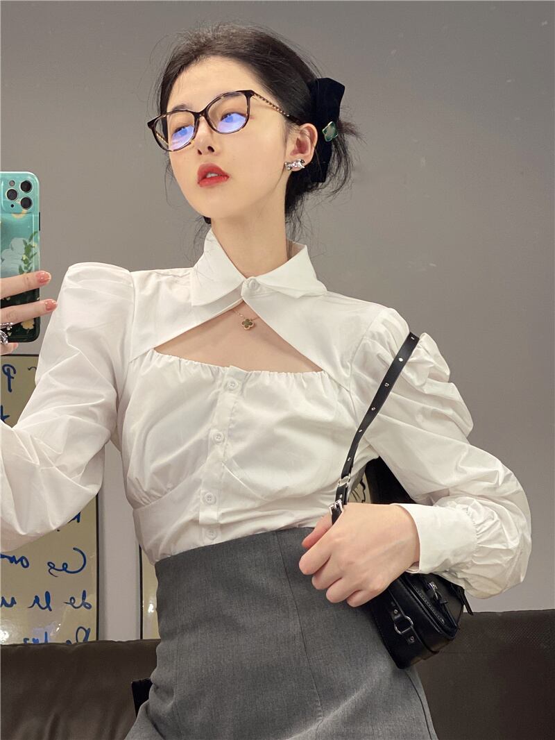 ホワイトスリーブシャツ ショートサマースリムトップス ロング 夏物 セブンプリンセス94360420282