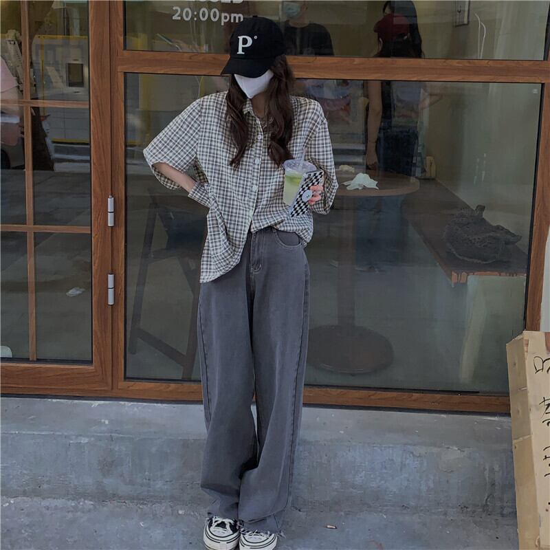 サマールーズブラックホワイト格子柄シャツ トップス レディース ロング 夏物 セブンプリンセス18133369757