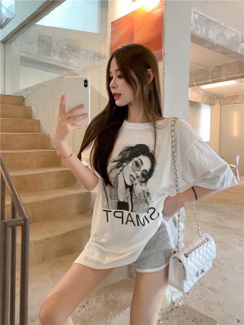 スタンダードTシャツ サマー薄手プリントルーズカジュアルホワイトレッドトップス レトロ 夏物 セブンプリンセス10214244451