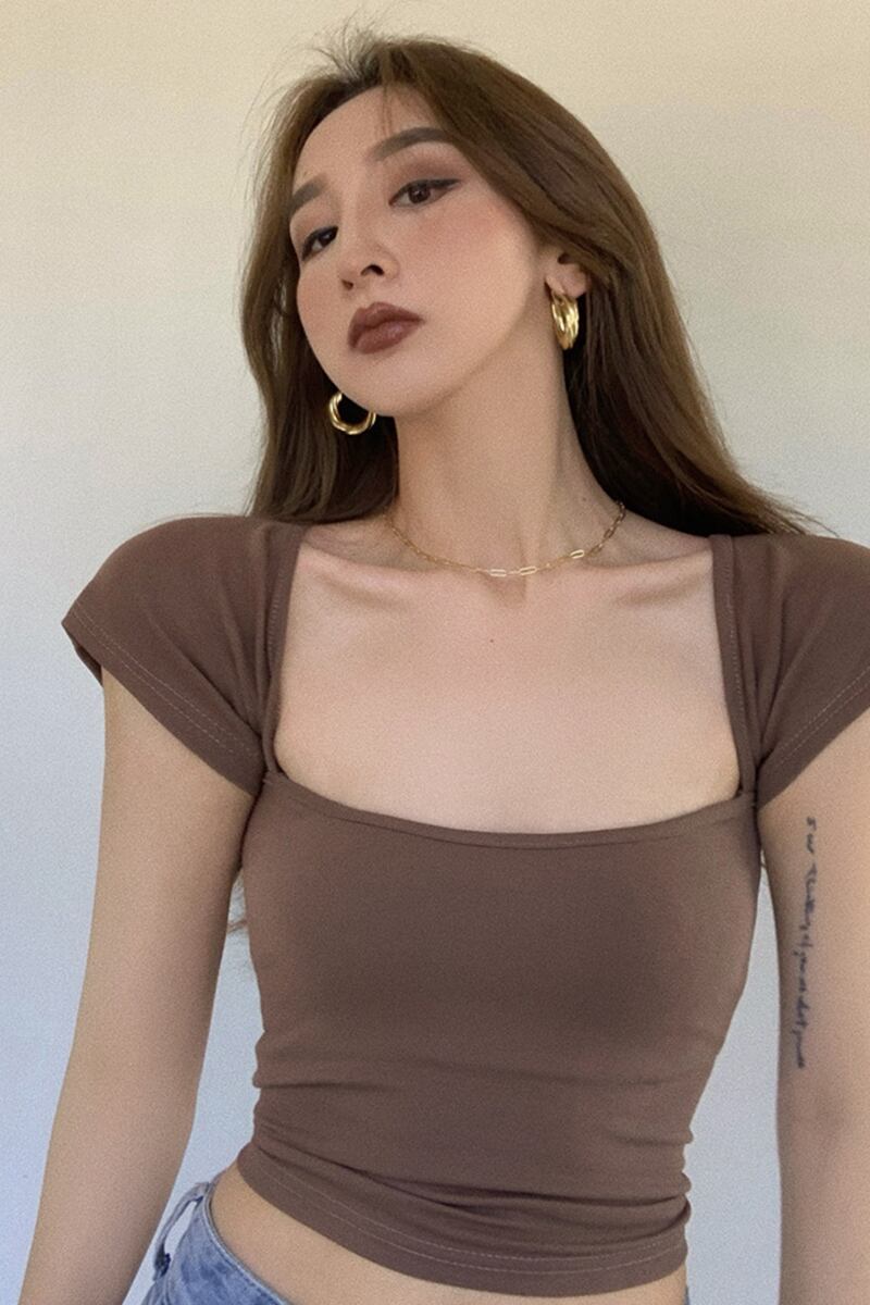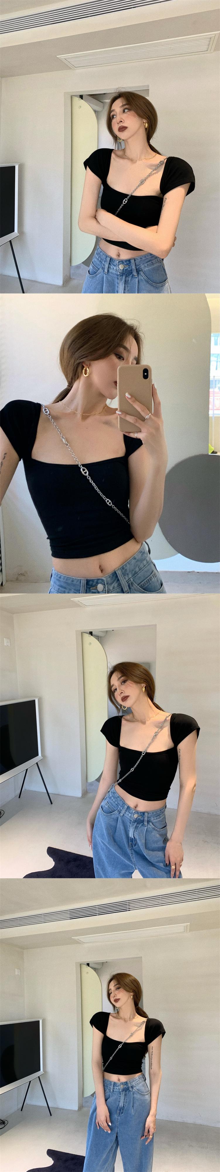 ショートTシャツ レディースサマースタイルソリッド カラースリムトップス 夏物 ソリッドカラー スクウェア セブンプリンセス61106123455