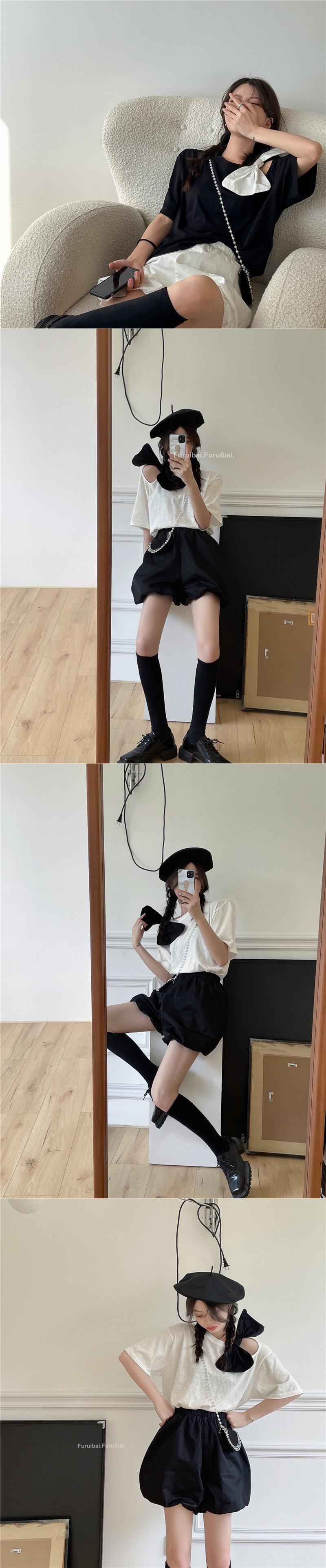 色:白いTシャツ,ホワイトショート,黒いTシャツ,黒のショートパンツ