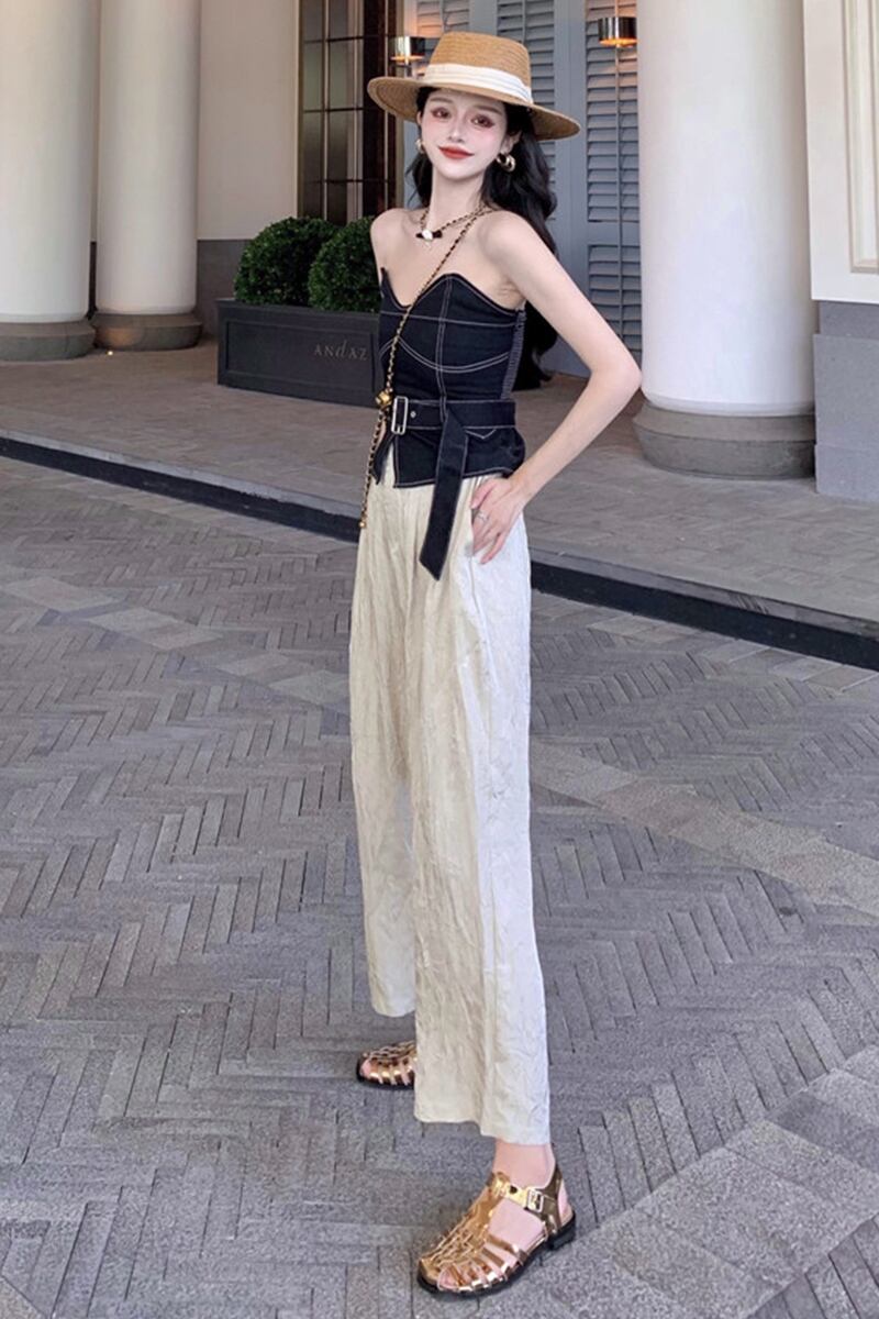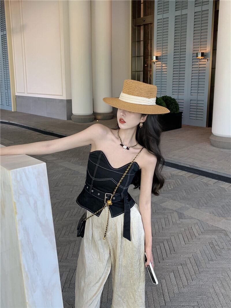 バックトップス サマー薄手ストラップレスショートブラックレッドレディース 夏物 セブンプリンセス84117445947