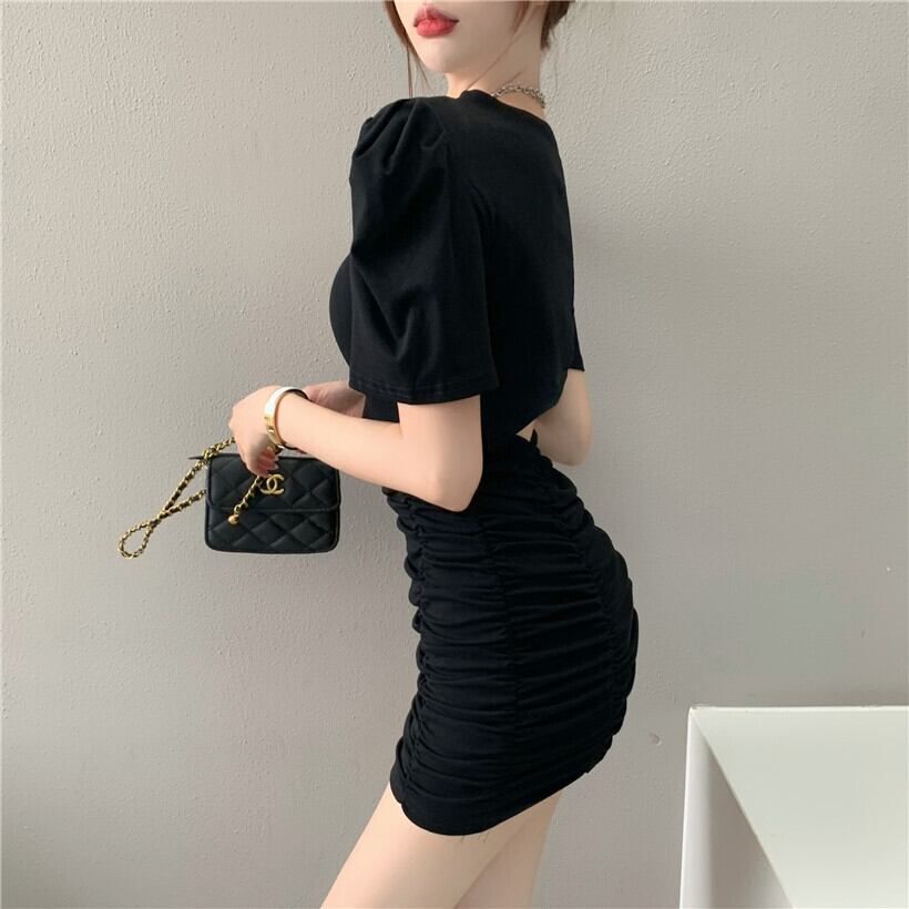 スリーブブラックドレス ウェストショートサマースカート 薄手 夏物 セブンプリンセス31006775587