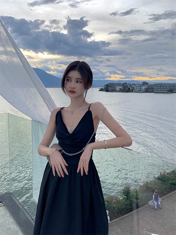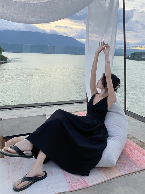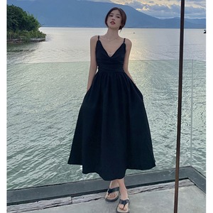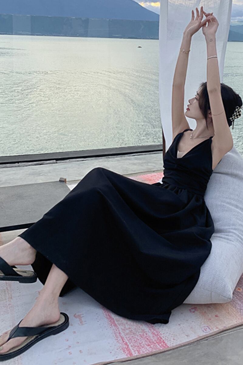 スタイルドレス サマーバックレスVネックブラックウェスト薄手スカート 夏物 セブンプリンセス35180189442