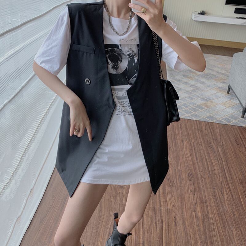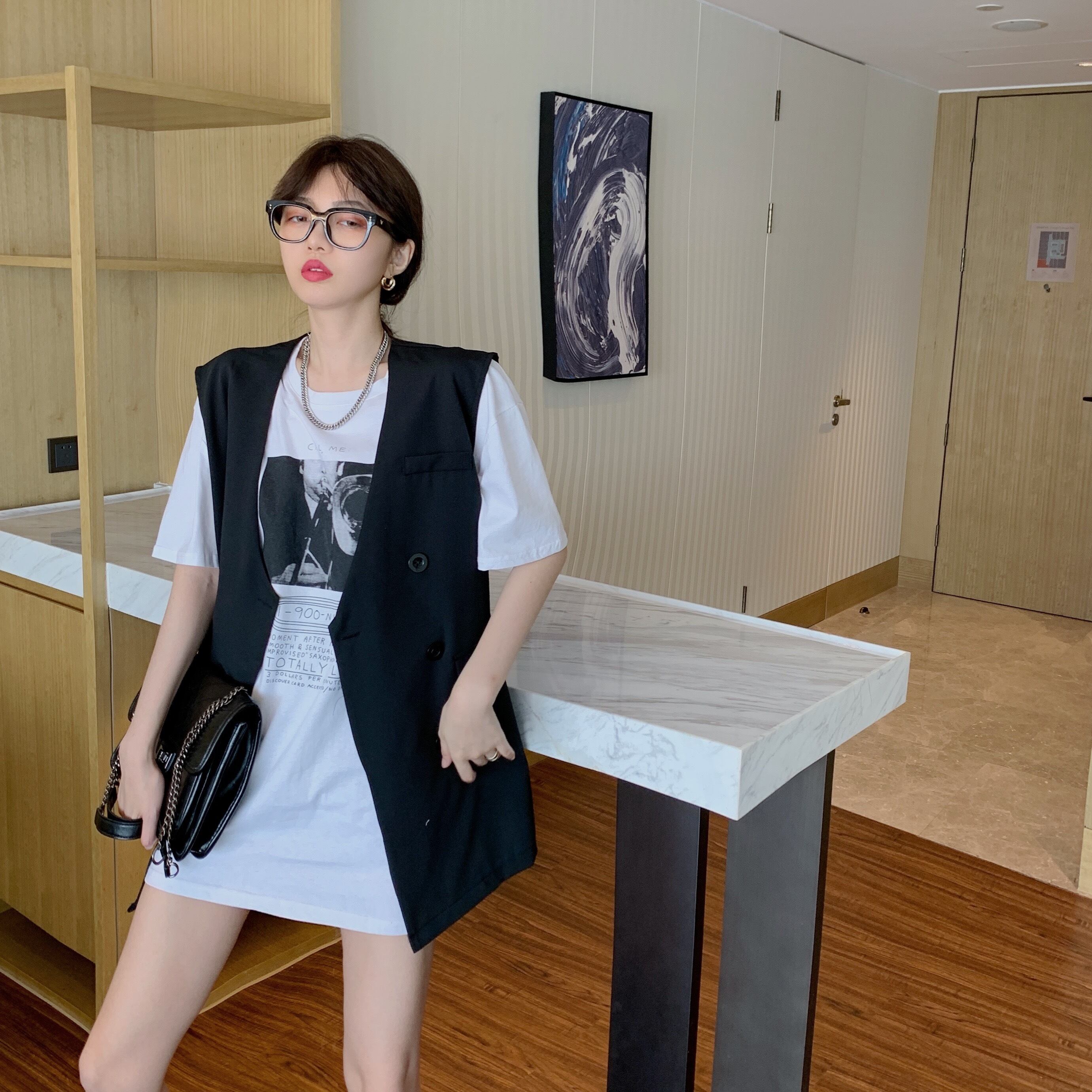 ジャケット レディースサマー薄手ブラックルーズスタンダードノースリーブ レトロ 夏物 セブンプリンセス77162802181