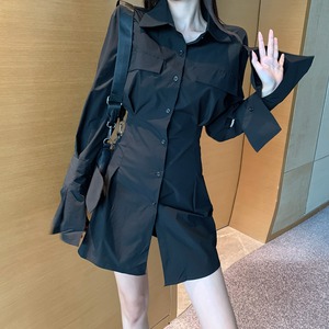 シャツ ドレス サマーウェストスカート 薄手スリットスタンダードAライン ロング レトロ 夏物 セブンプリンセス38073825986