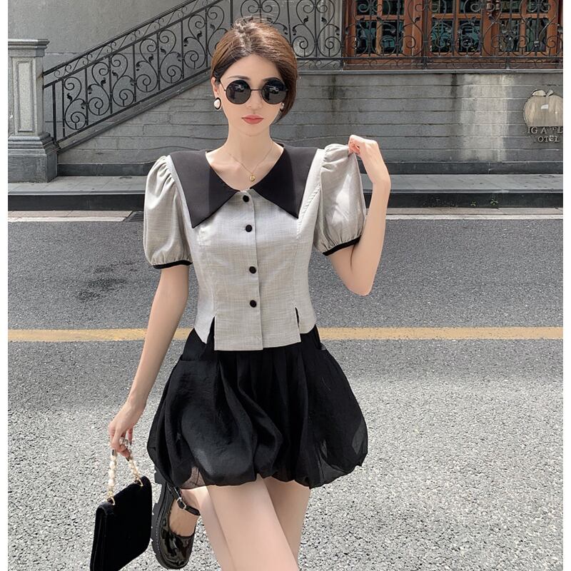 スリーブシャツ レディースサマー薄手ネイビーカラースリム半袖トップス ショート ハーフスリーブ 夏物 セブンプリンセス8159049665