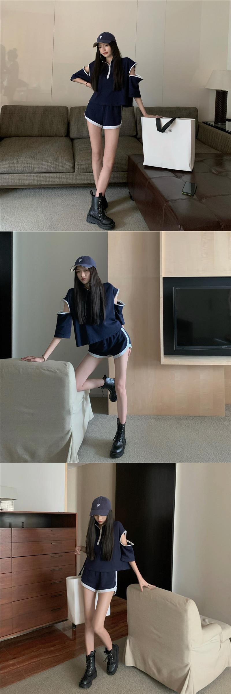 色:アプリコットトップ,アプリコットショーツ,ブルートップ,ブルーショートパンツ