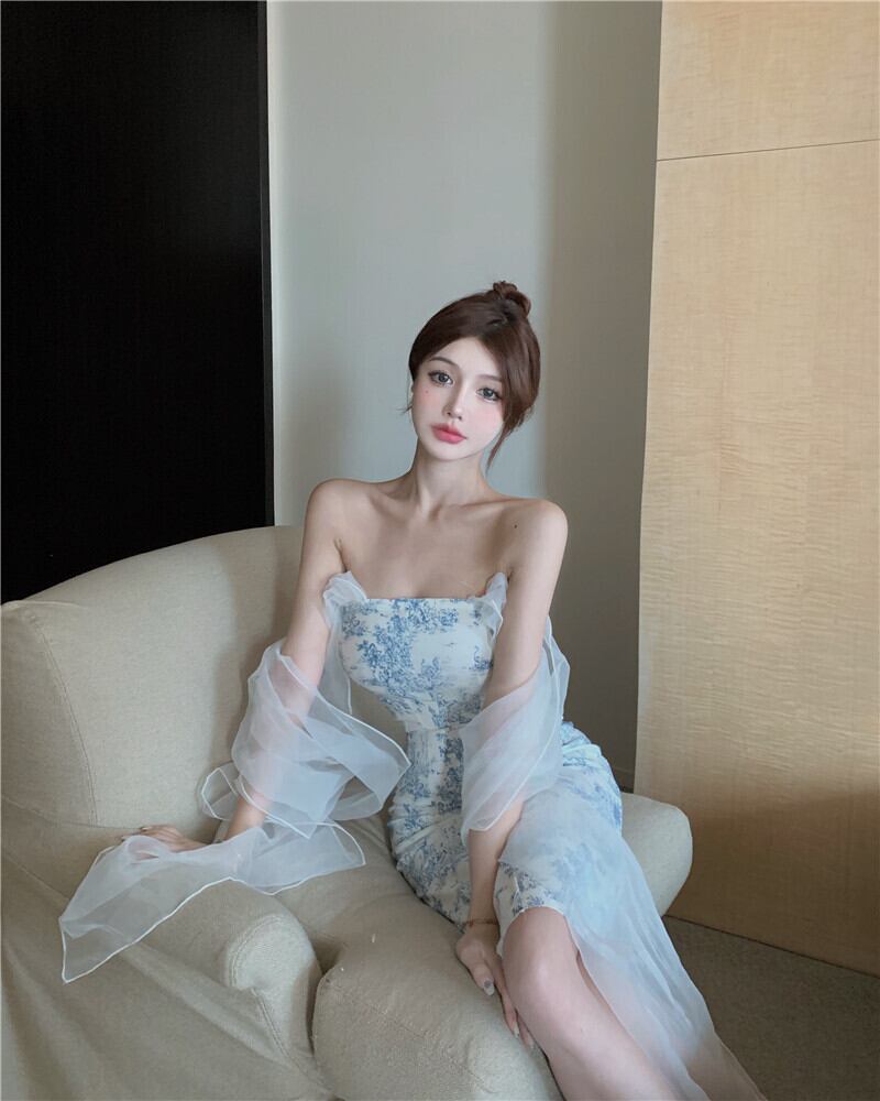 ドレス サマープリント柄ロングスカート スタンダードウェスト薄手 レトロ 夏物 セブンプリンセス20679192584