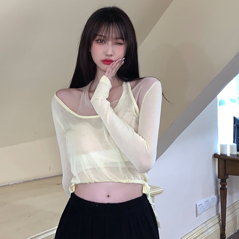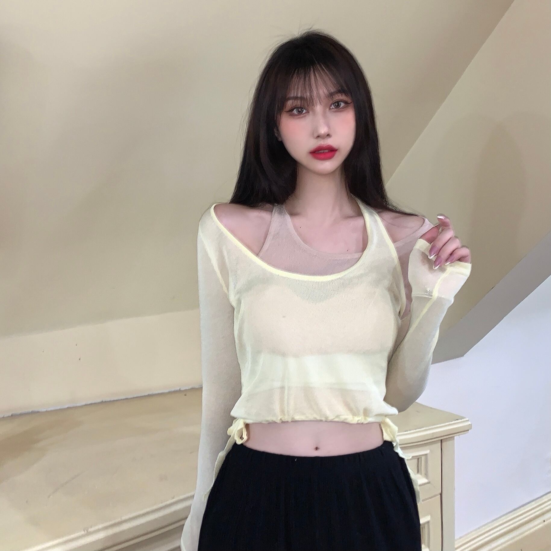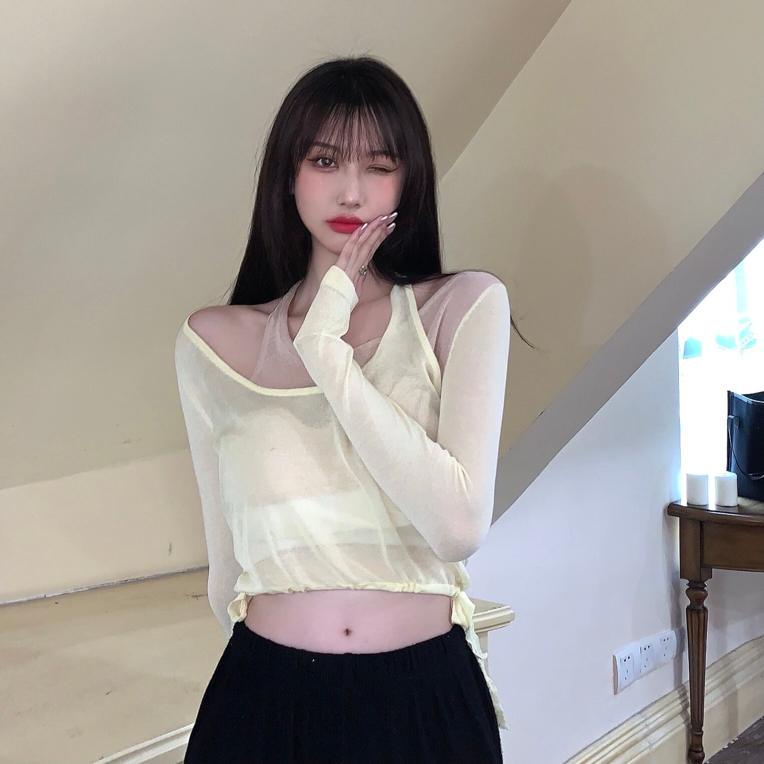Tシャツ レディースサマー薄手ハイウェストショートトップス ロング 夏物 オフショルダー セブンプリンセス46615019778