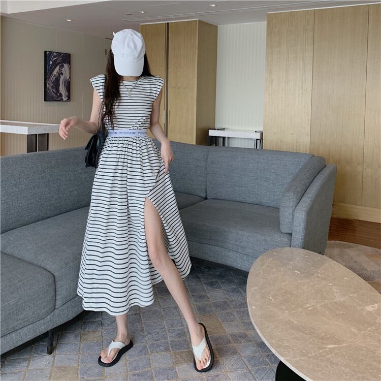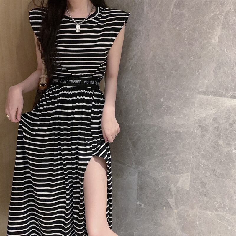 ブラックホワイトストライプロングスカート サマールーズTシャツ シャツ 夏物 セブンプリンセス47741876148
