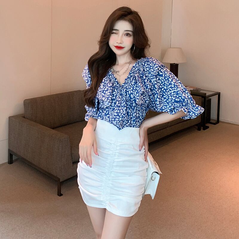 Vネックフローラルシャツ レディースサマースタンダードトップス レトロ 夏物 花柄 セブンプリンセス69911354245