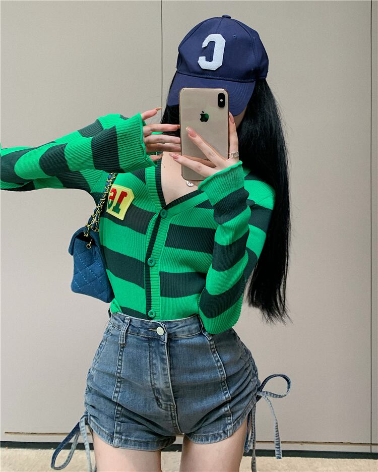 色:グリーントップ,ホワイトトップ,グレーと黒のショートパンツ,ブルーショートパンツ