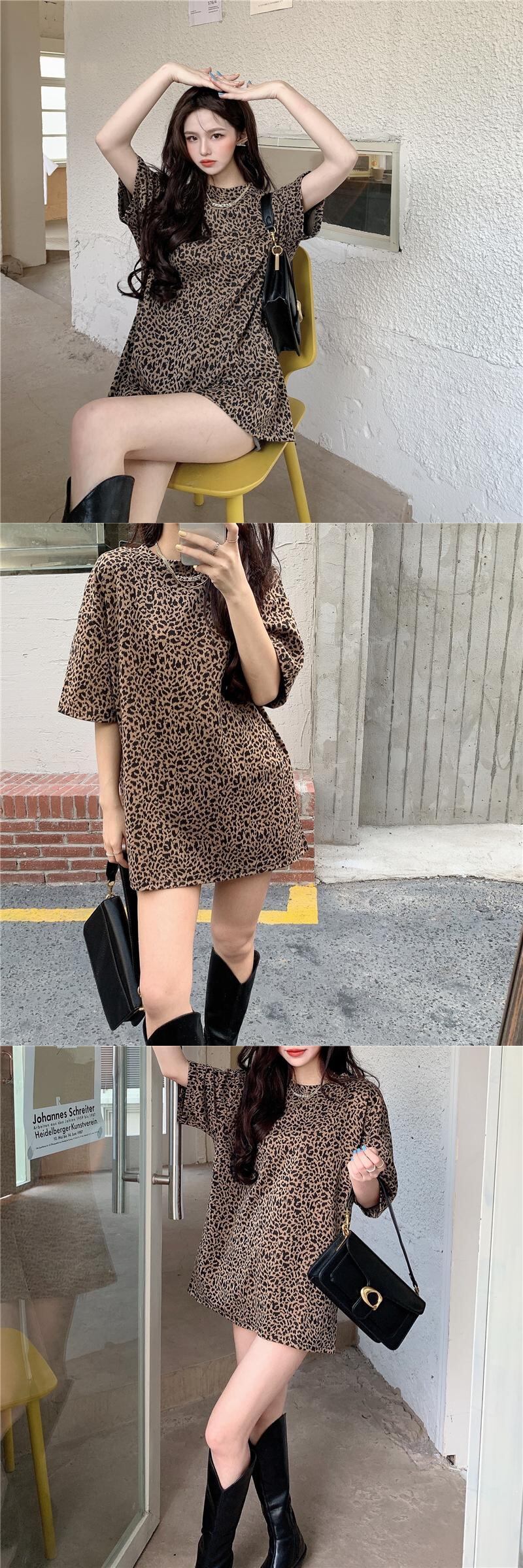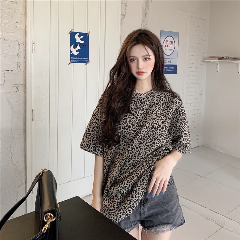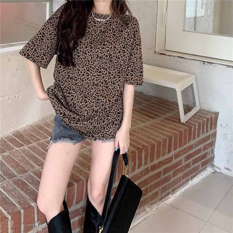スタンダードレオパードプリント柄Tシャツ サマールーズ薄手ラウンドネックカジュアルトップス レトロ 夏物 Oネック セブンプリンセス92571188945