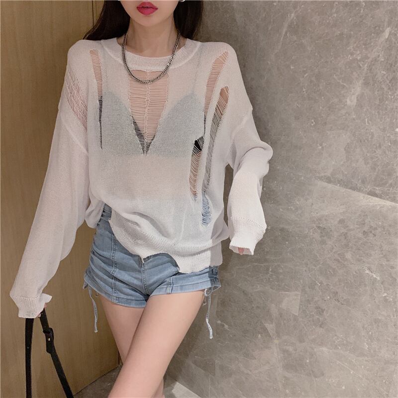 ブラウス サマー薄手セーター ルーズトップス ロング 夏物 シルク セブンプリンセス52968070101
