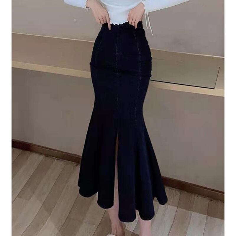スカート サマーハイウェストウェスト薄手スタンダードブラック レトロ 夏物 セブンプリンセス54712574521