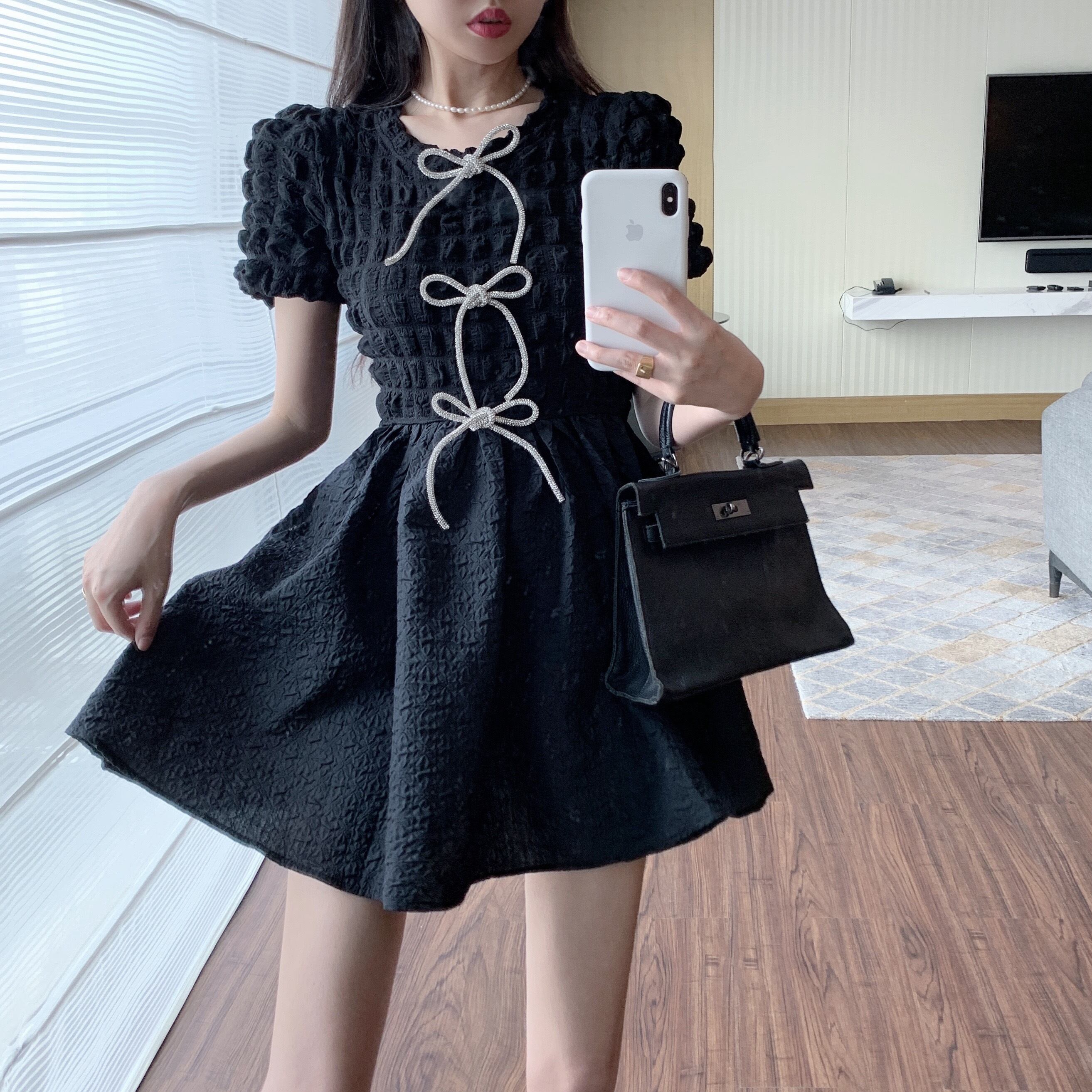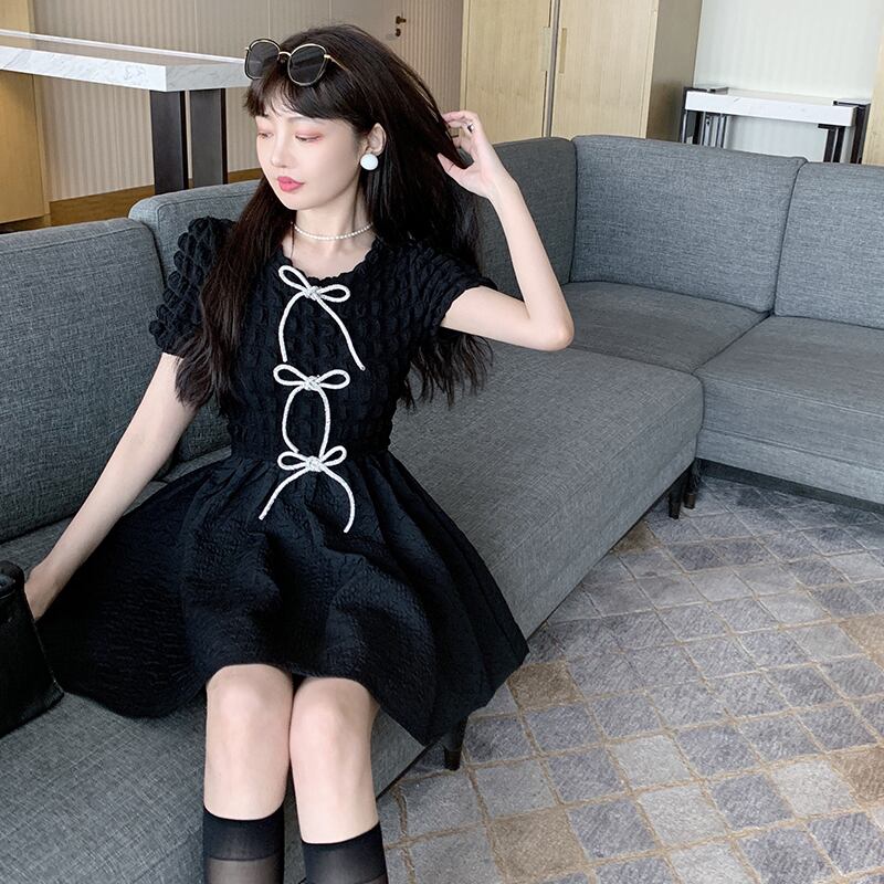 スタイルスリーブドレス サマーリボンブラックウェスト薄手スカート 夏物 セブンプリンセス84091948147