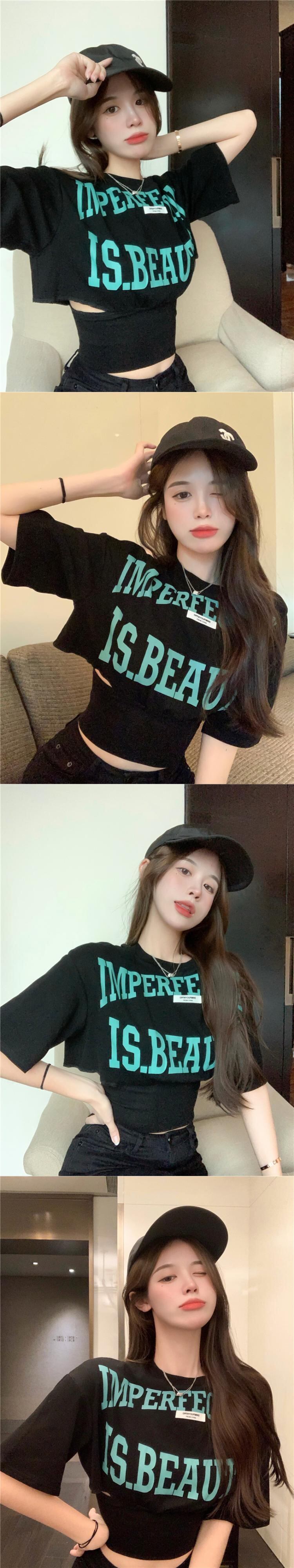 プリントルーズショートウェストTシャツ トップス セブンプリンセス57267242123