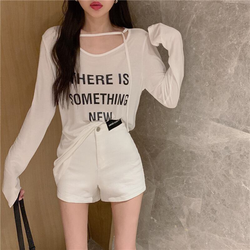 プリント薄手ルーズTシャツ サマーホワイトカジュアルトップス レディース ロング 夏物 セブンプリンセス22227601322