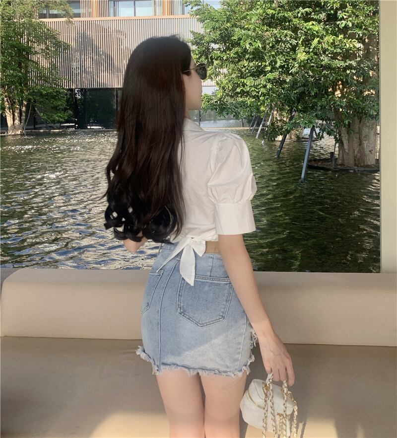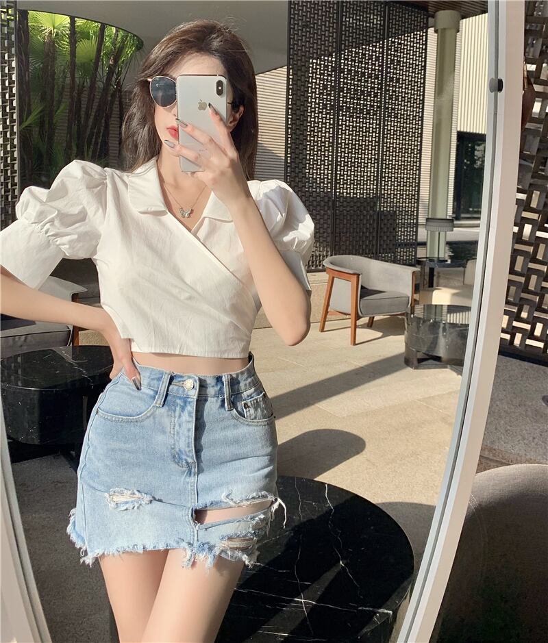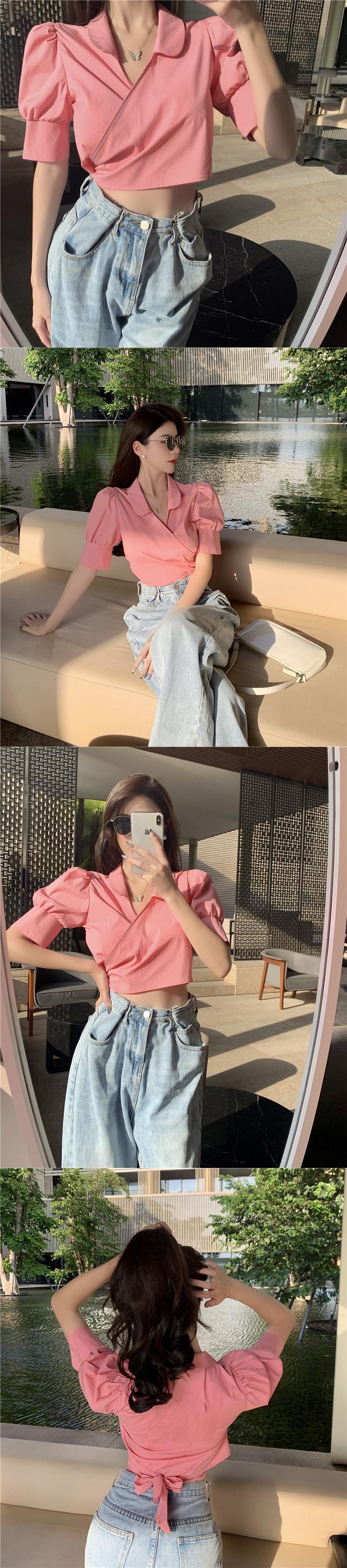 ショートトップス スリーブVネックスタンダードシャツ レトロ セブンプリンセス37795473826