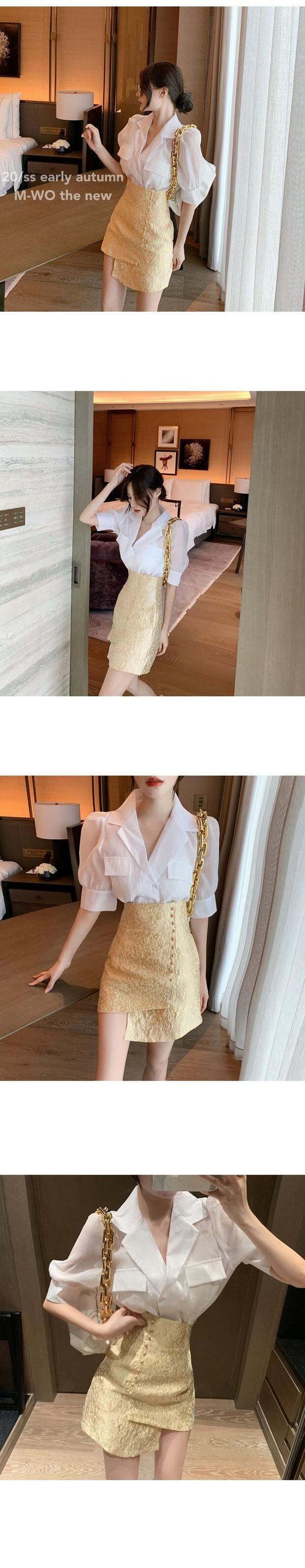 ホワイトスリーブトップス サマー薄手スタイルシャツ 半袖 ショート ハーフスリーブ 夏物 セブンプリンセス43115878622