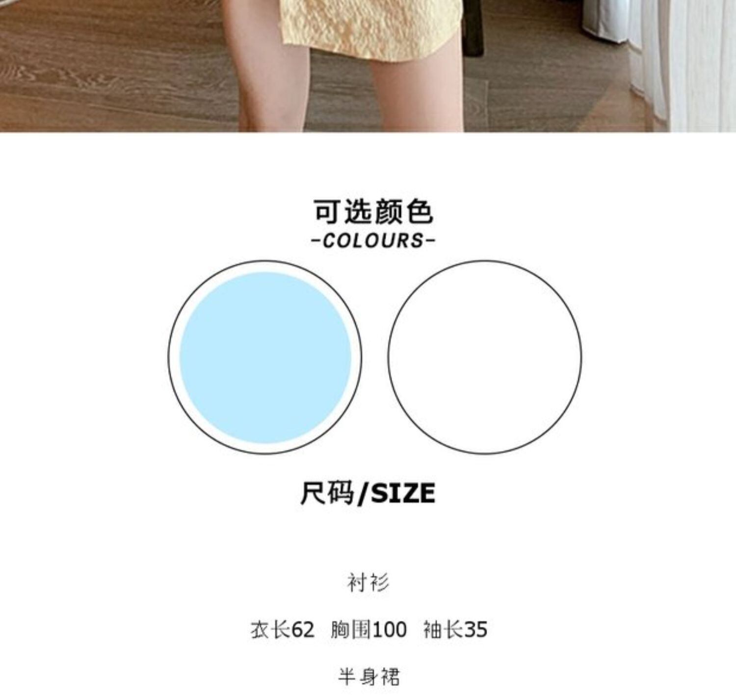 色:白のシャツ】,イエロー【スカート】,スカイブルー【スカート】,スカイブルー【シャツ】