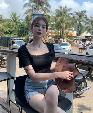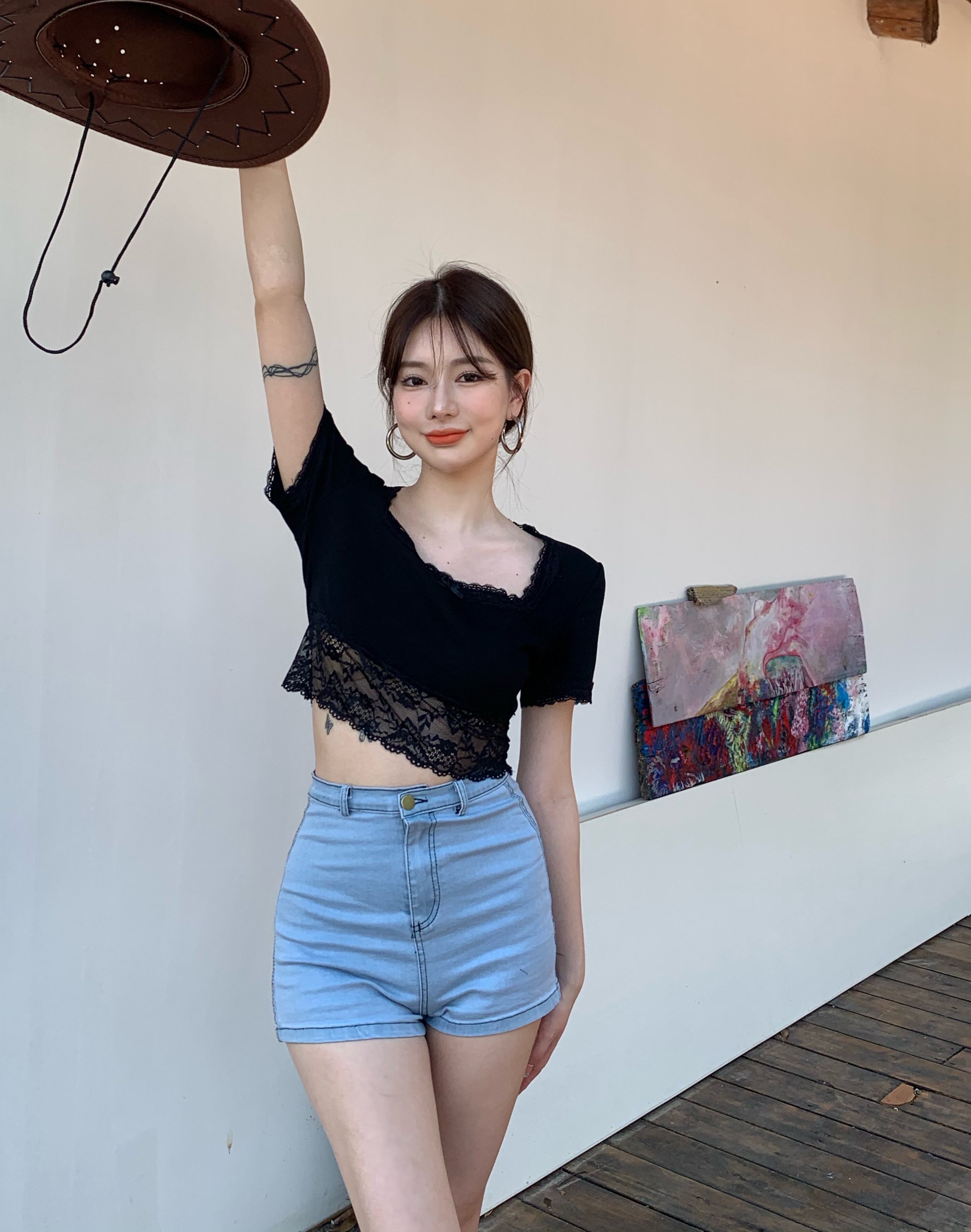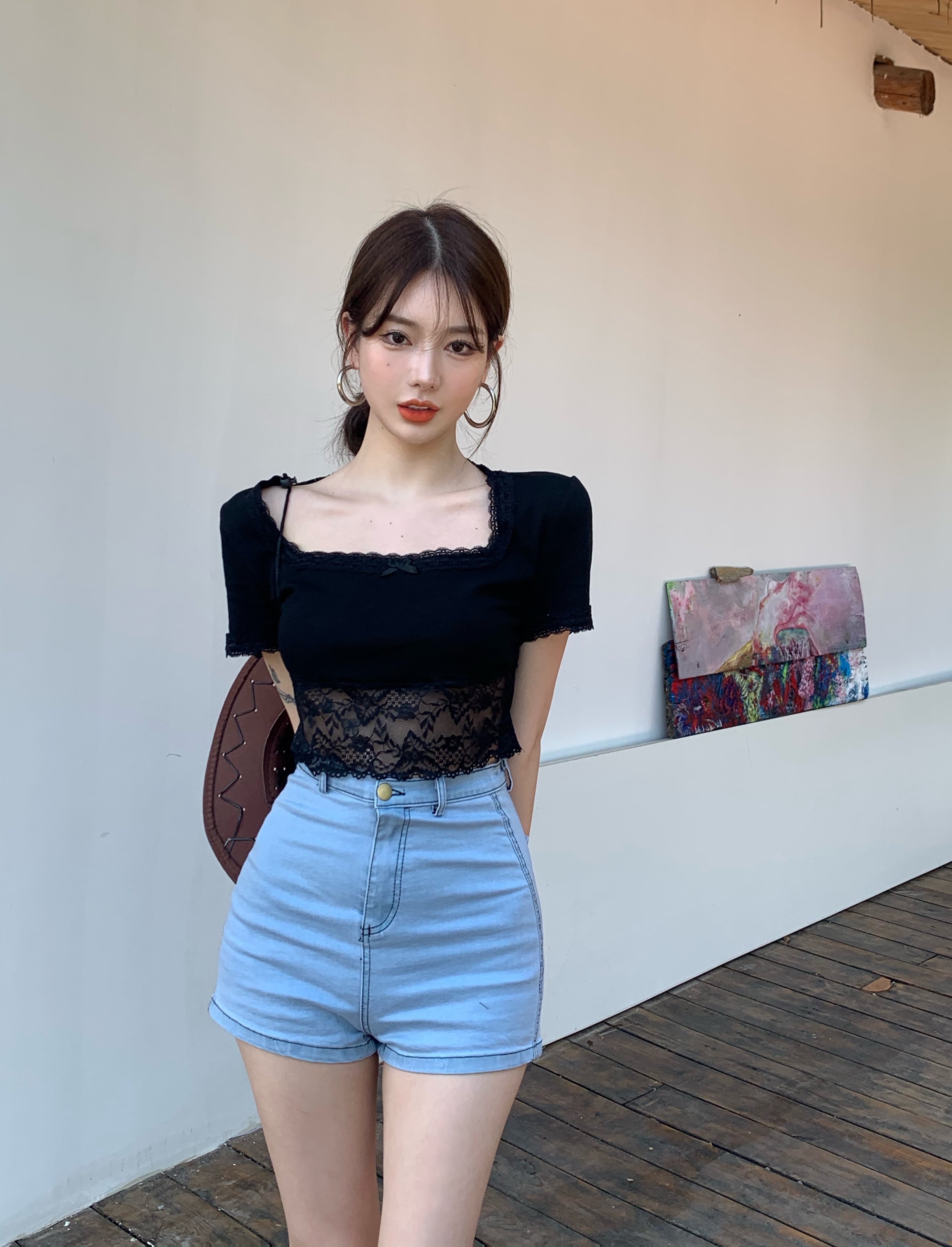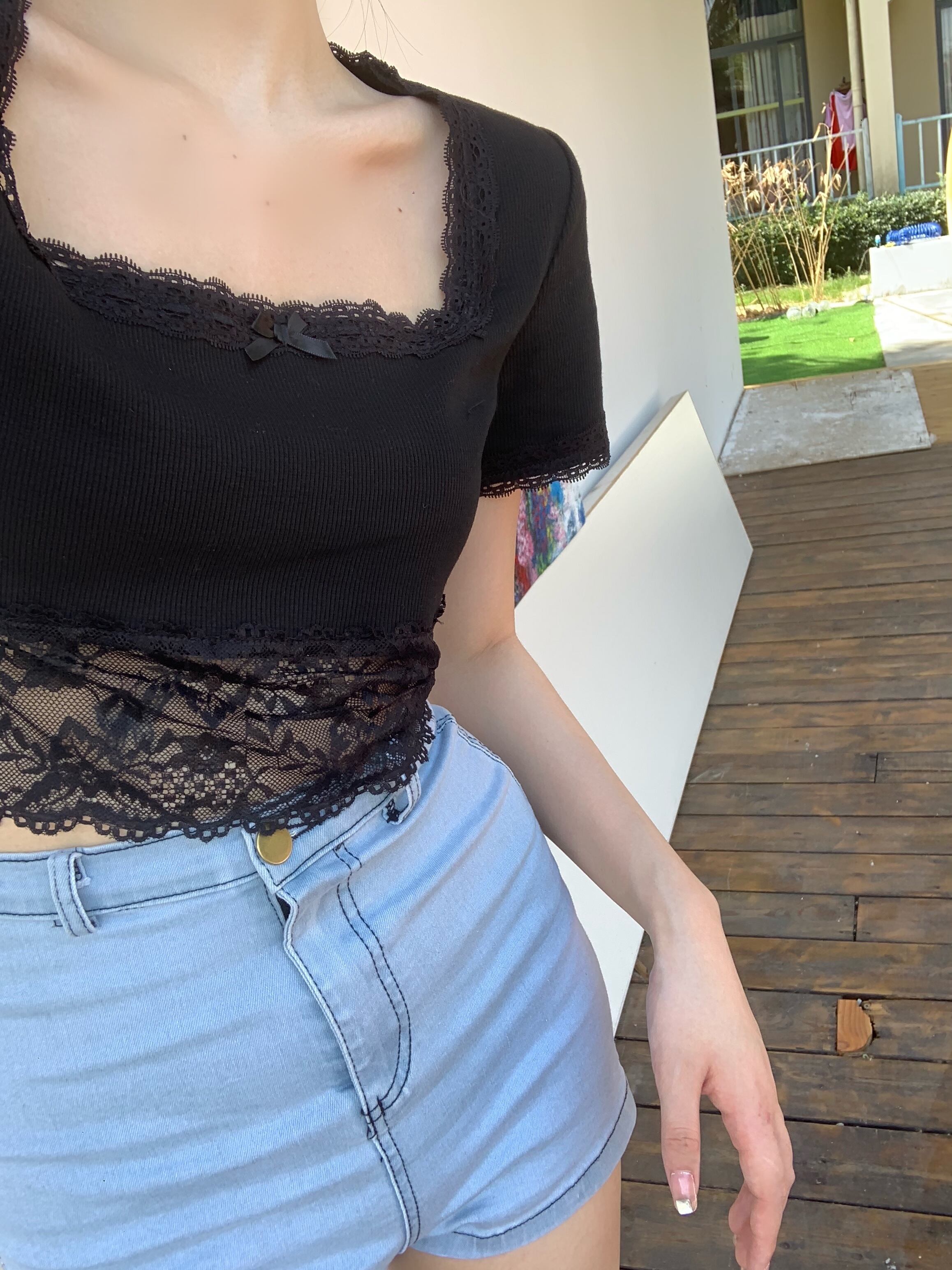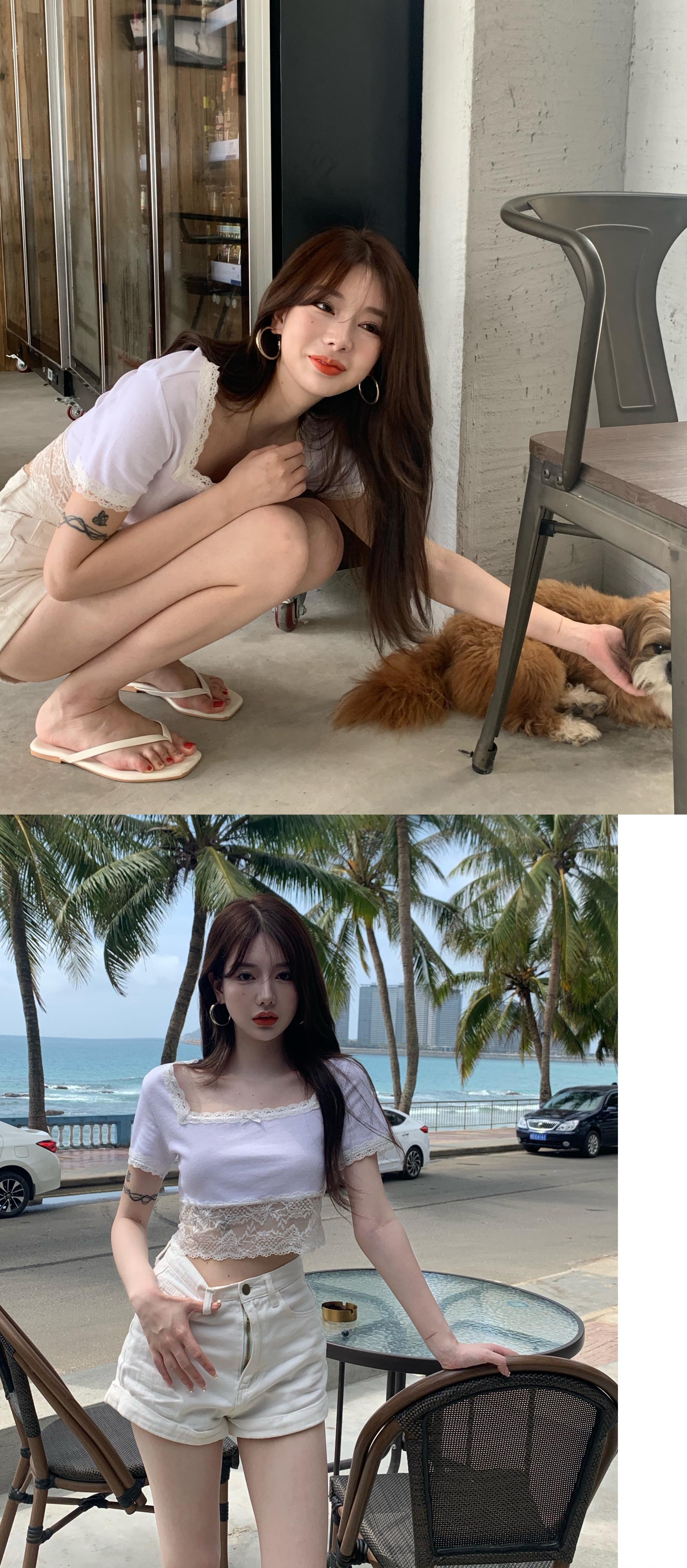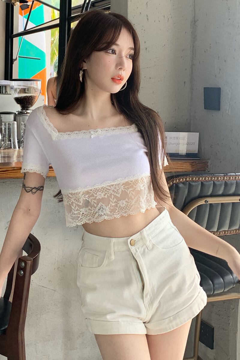 レースショートブラウス レディース スクウェア ステッチ セブンプリンセス92581194078