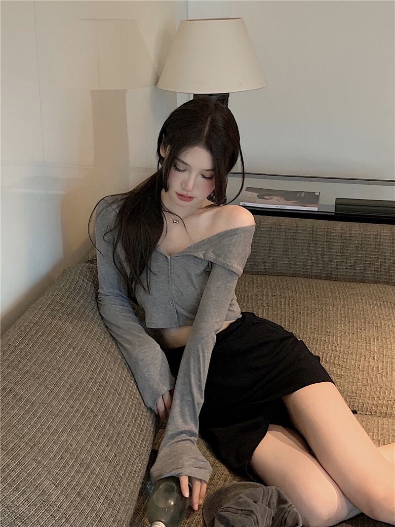ショートフードTシャツ シャツ レディースサマー薄手スリムグレーハイウェストウェスト長袖スリーブカーディガントップス ロング 夏物 セブンプリンセス38945930762