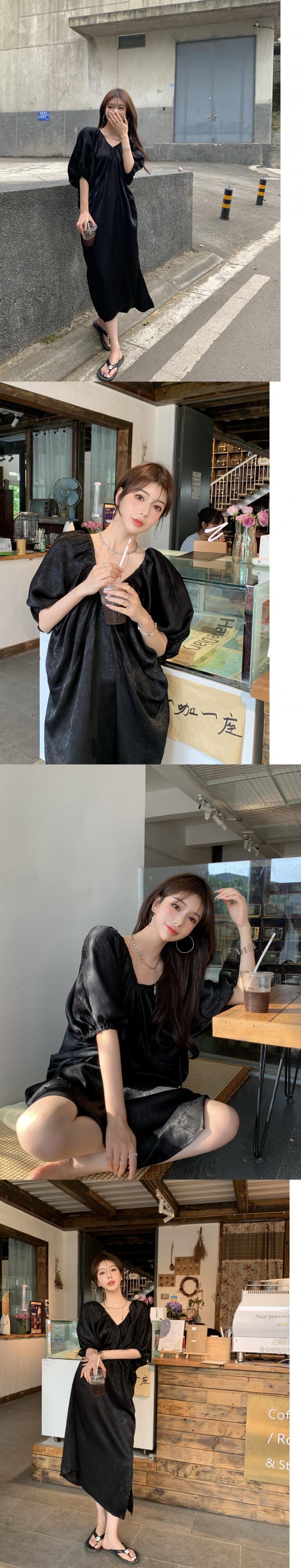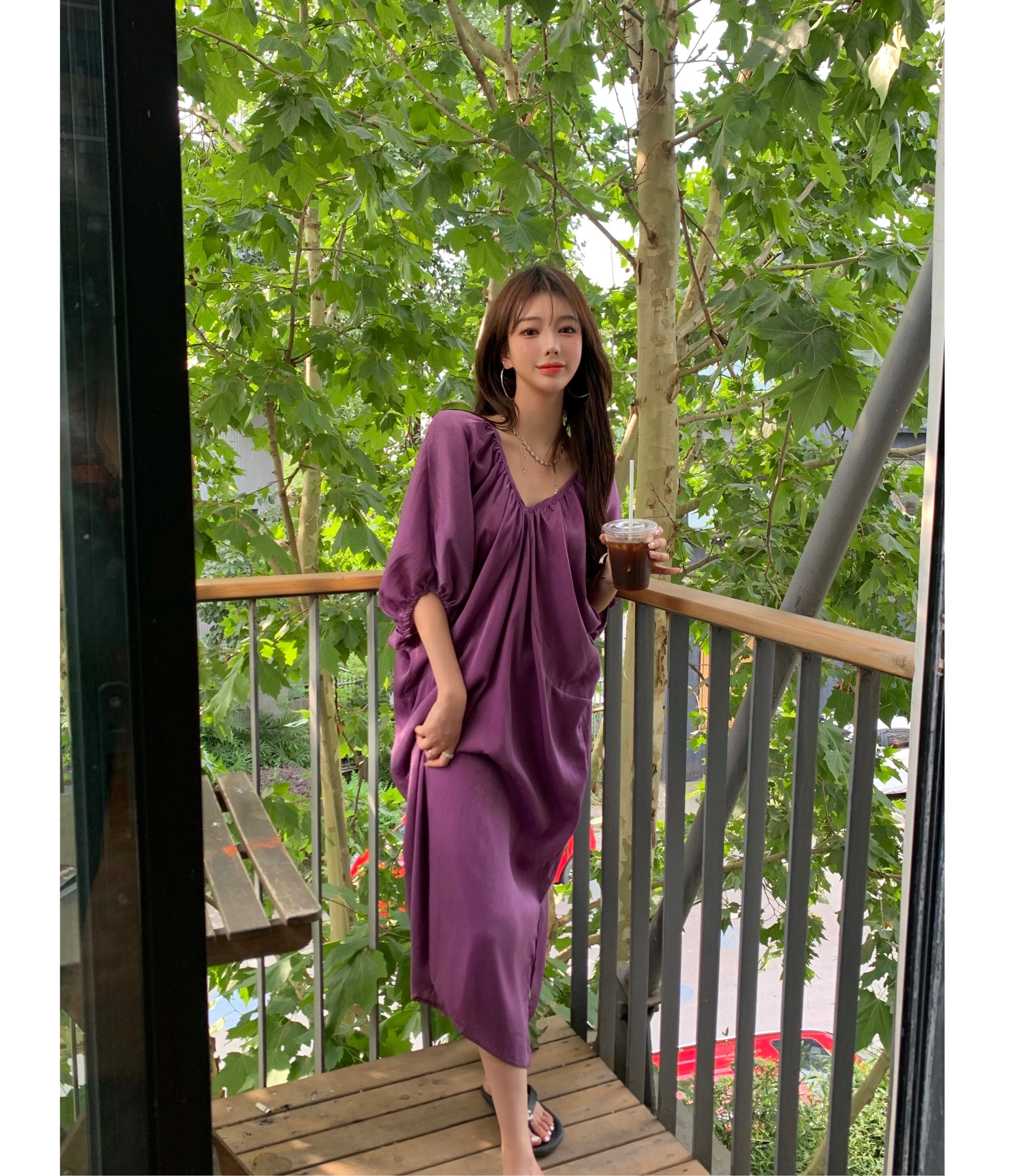 スリーブドレス サマースタイルVネックウェストロングスカート ルーズ 夏物 セブンプリンセス42363002615