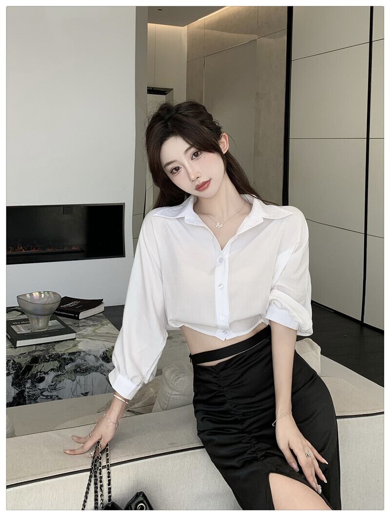 ショートホワイトシャツ レディースサマースタンダードカーディガンスリーブルーズカジュアル薄手半袖トップス レトロ ハーフスリーブ 夏物 セブンプリンセス87863027669