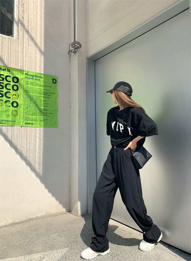 ブラックTシャツ サマー薄手ルーズカジュアルプリントトップス 夏物 セブンプリンセス33944847751