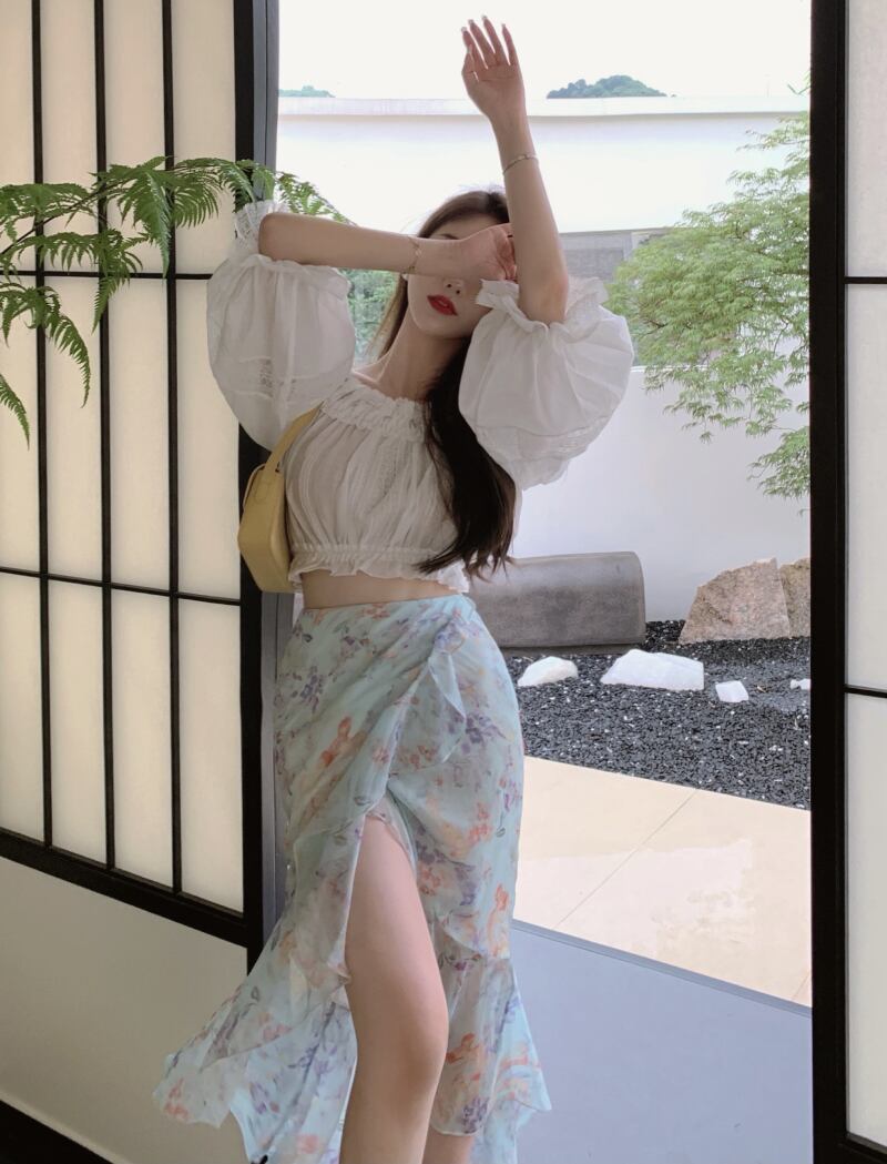 フローラルスカート サマー薄手ハイウェストウェストミディ 夏物 花柄 セブンプリンセス65468430562