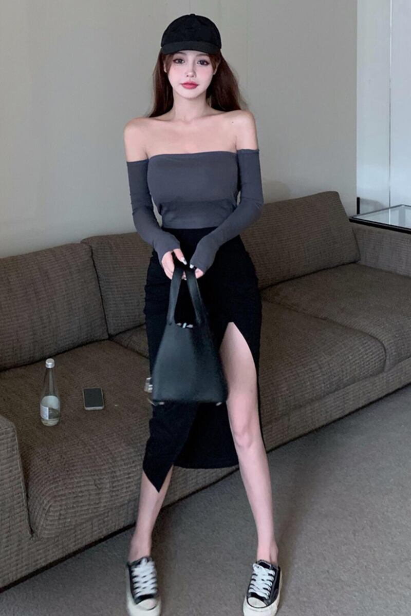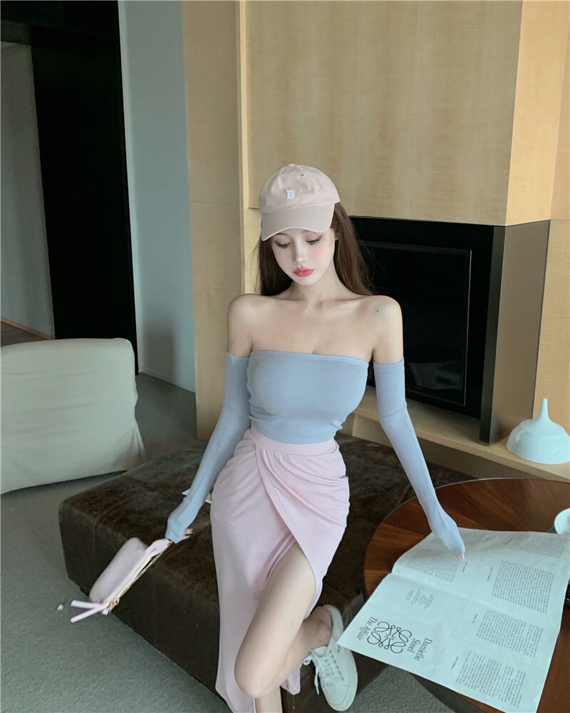 ストラップレスロングハイウェストウェストスリットスカート パンツ 長袖 セブンプリンセス92558455820
