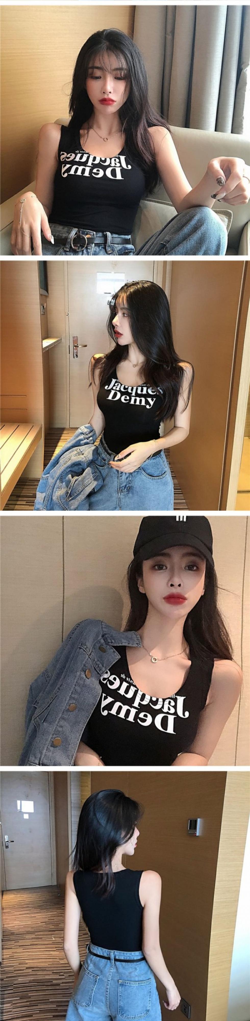 ホワイトレッドサマーショートスリムノースリーブトップス 夏物 セブンプリンセス45149848732