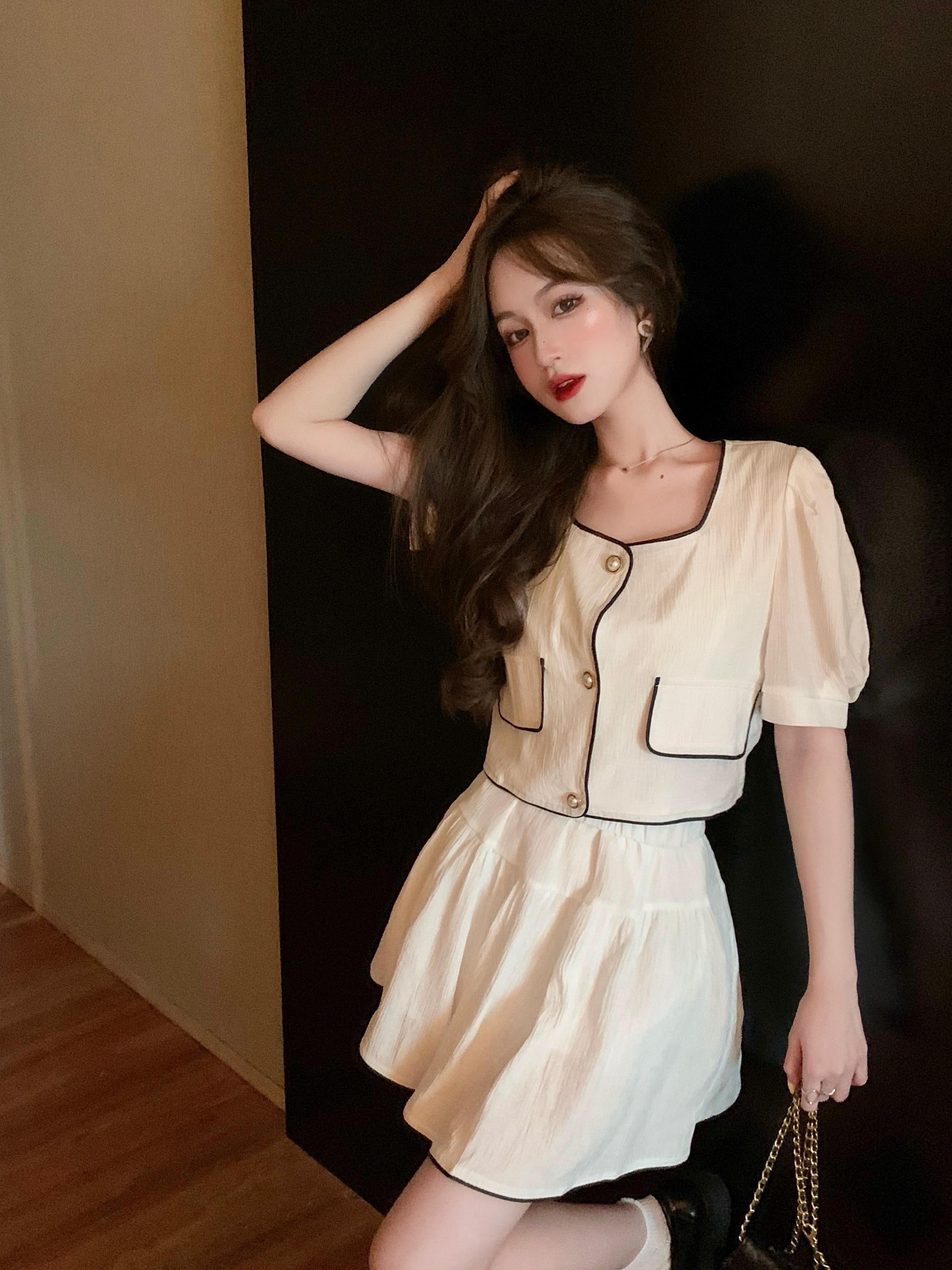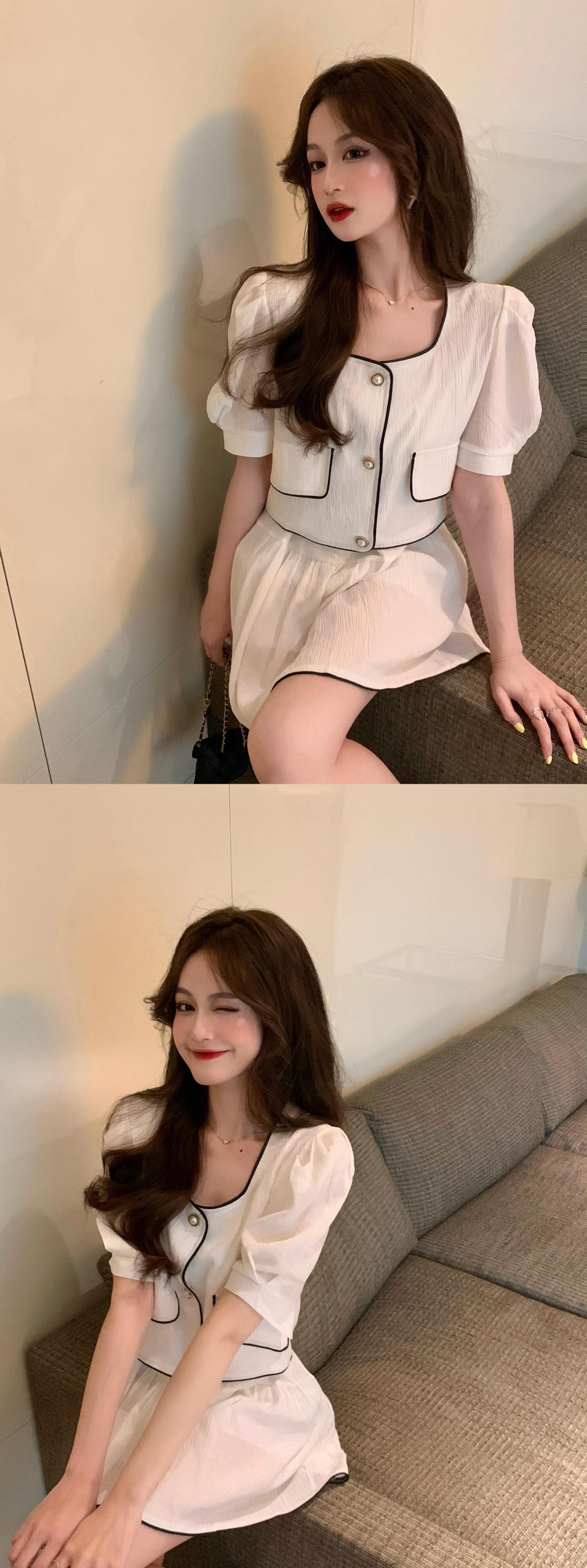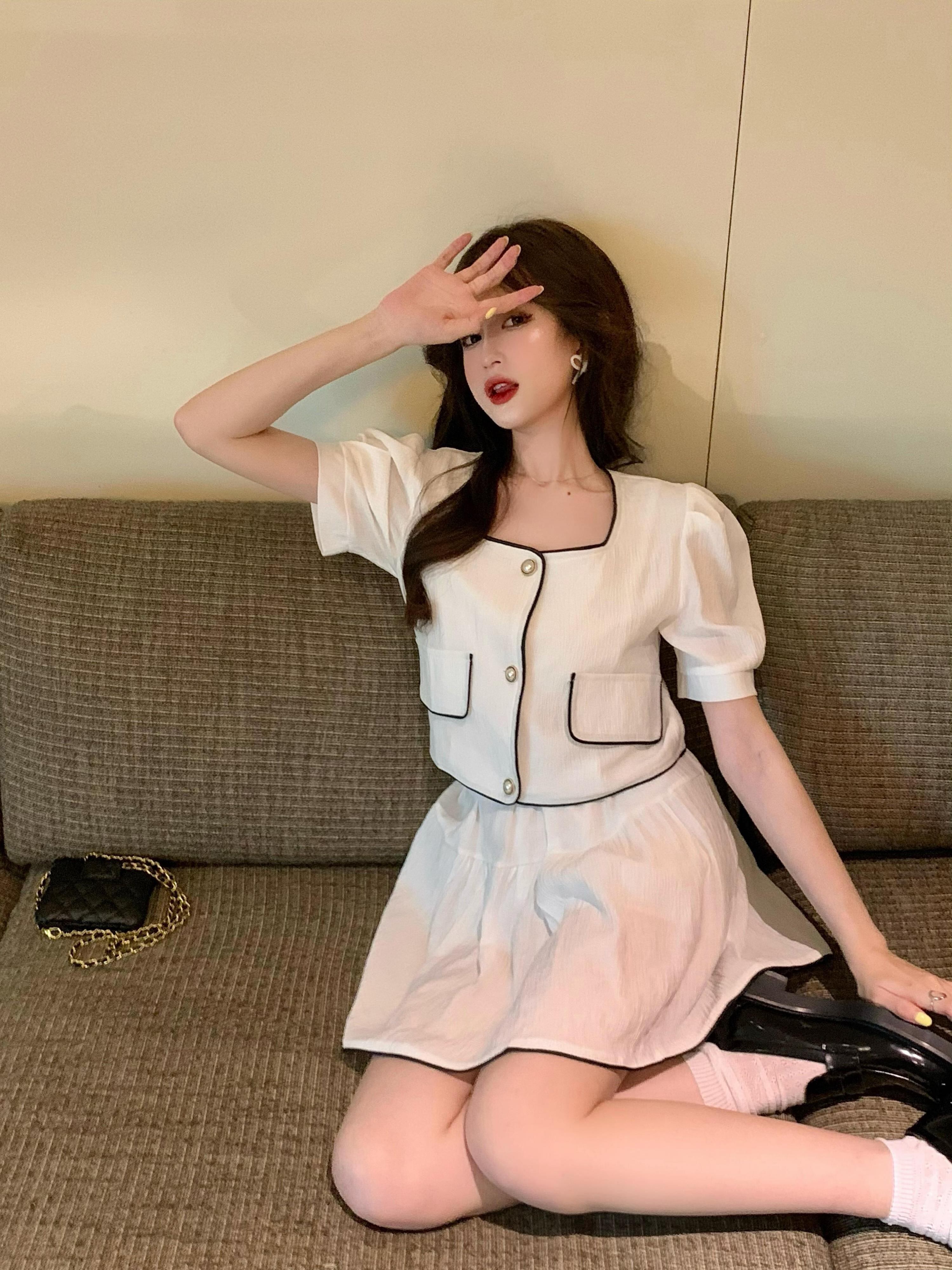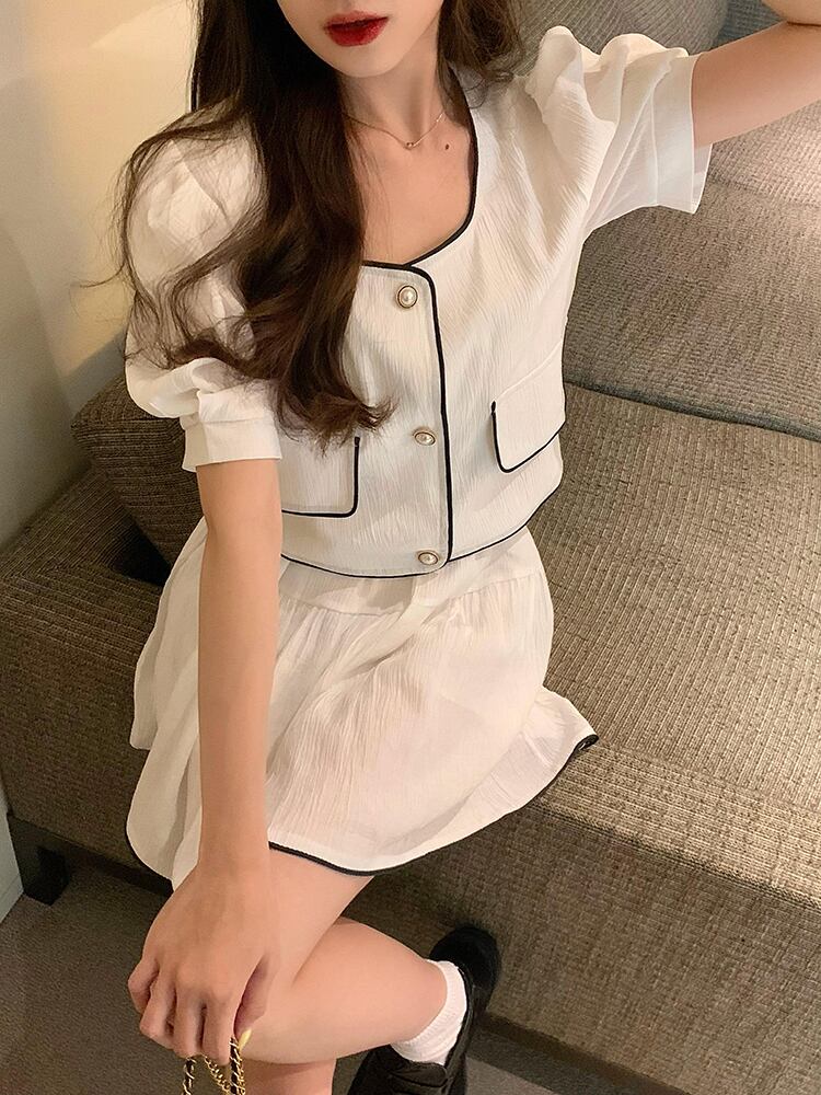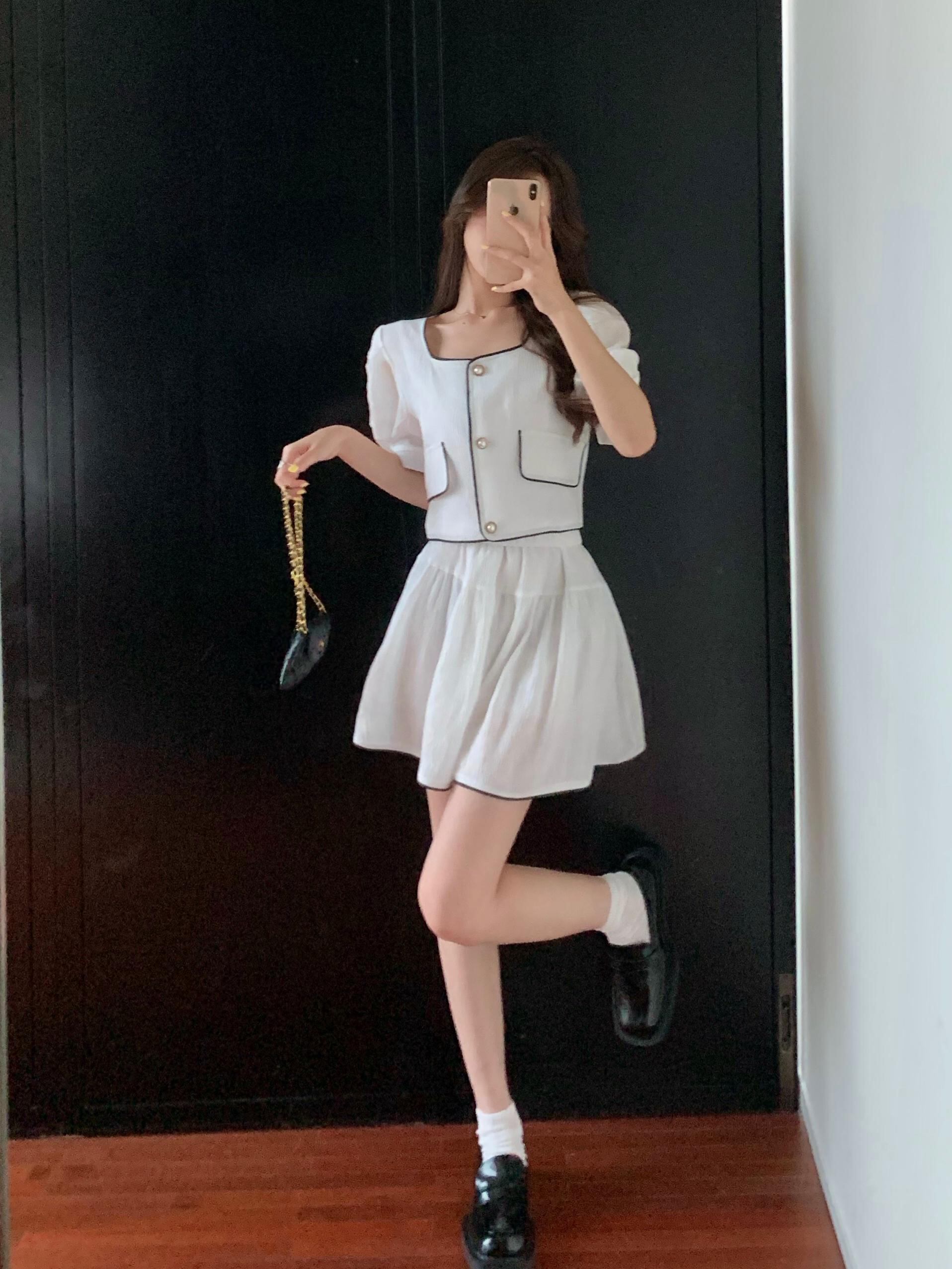 ショートスタンダードジャケット サマーホワイトAラインスカート レトロ 夏物 セブンプリンセス56233418378