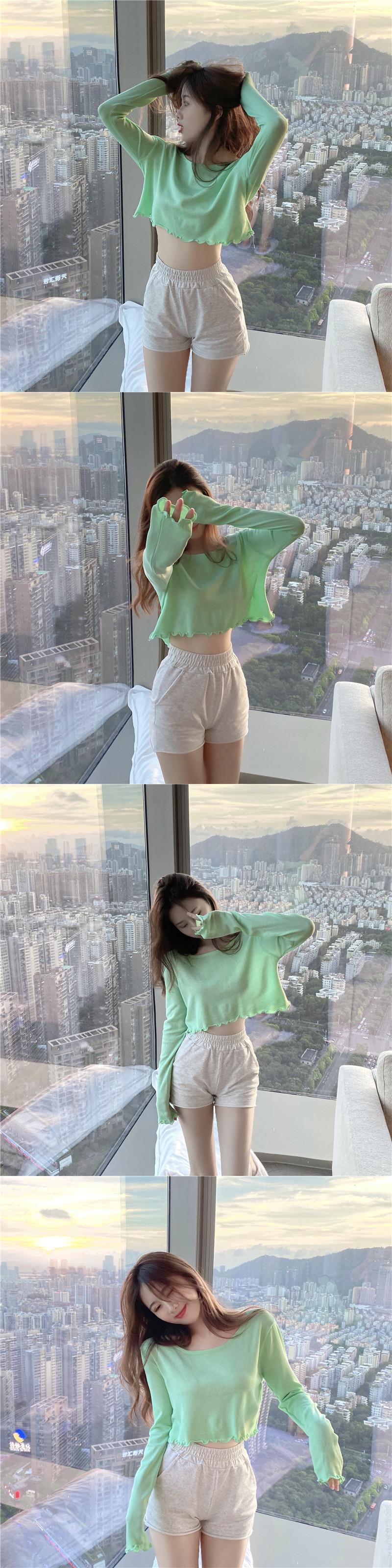 ショートTシャツ シャツ サマー薄手ソリッド カラーニットトップス ロング 夏物 ソリッドカラー セブンプリンセス35746041933
