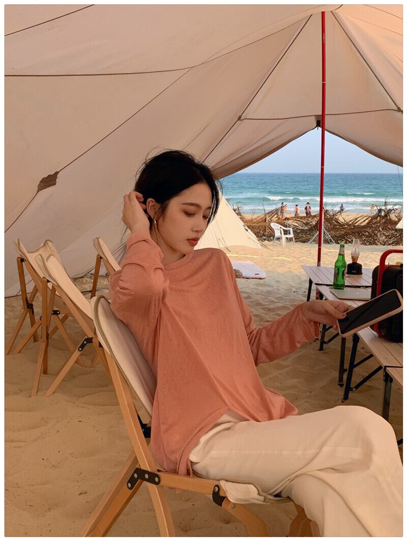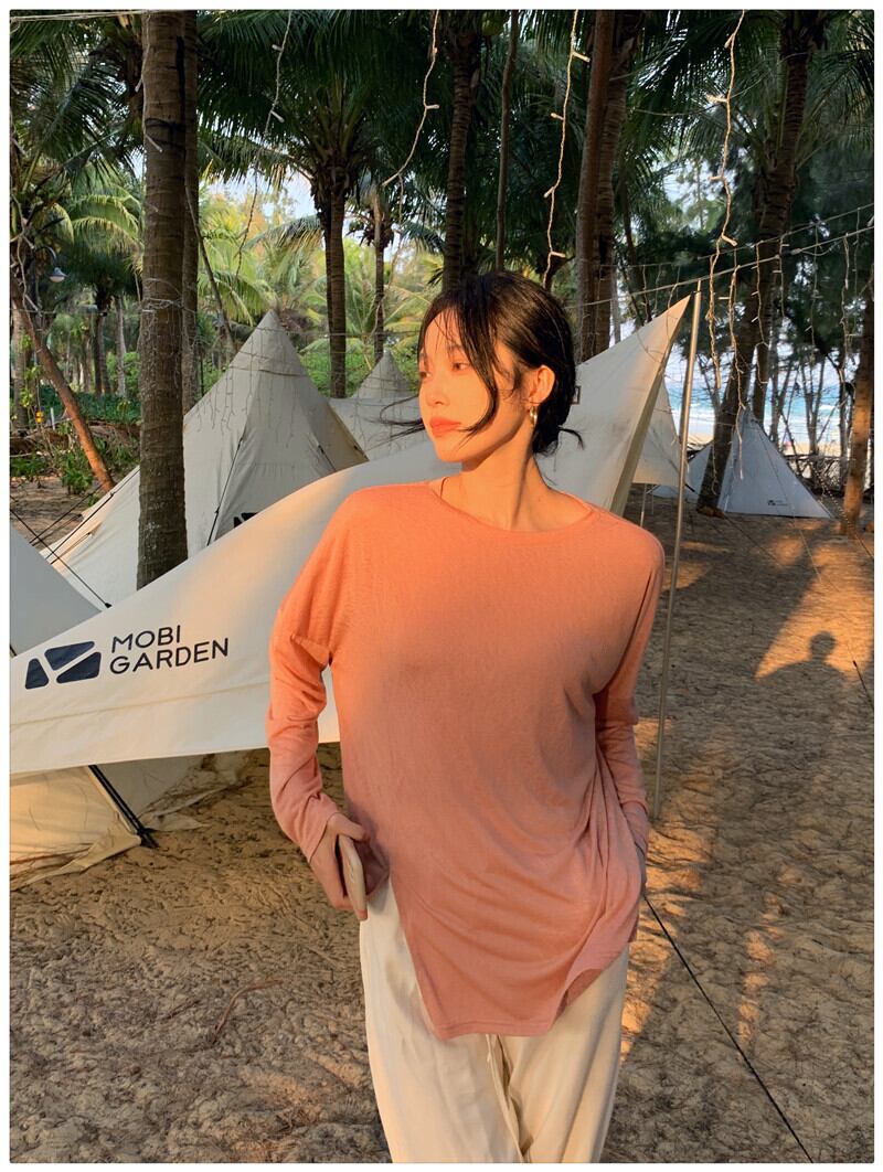 ラウンドネックTシャツ レディースサマー薄手ルーズトップス ロング 夏物 Oネック セブンプリンセス33202092626