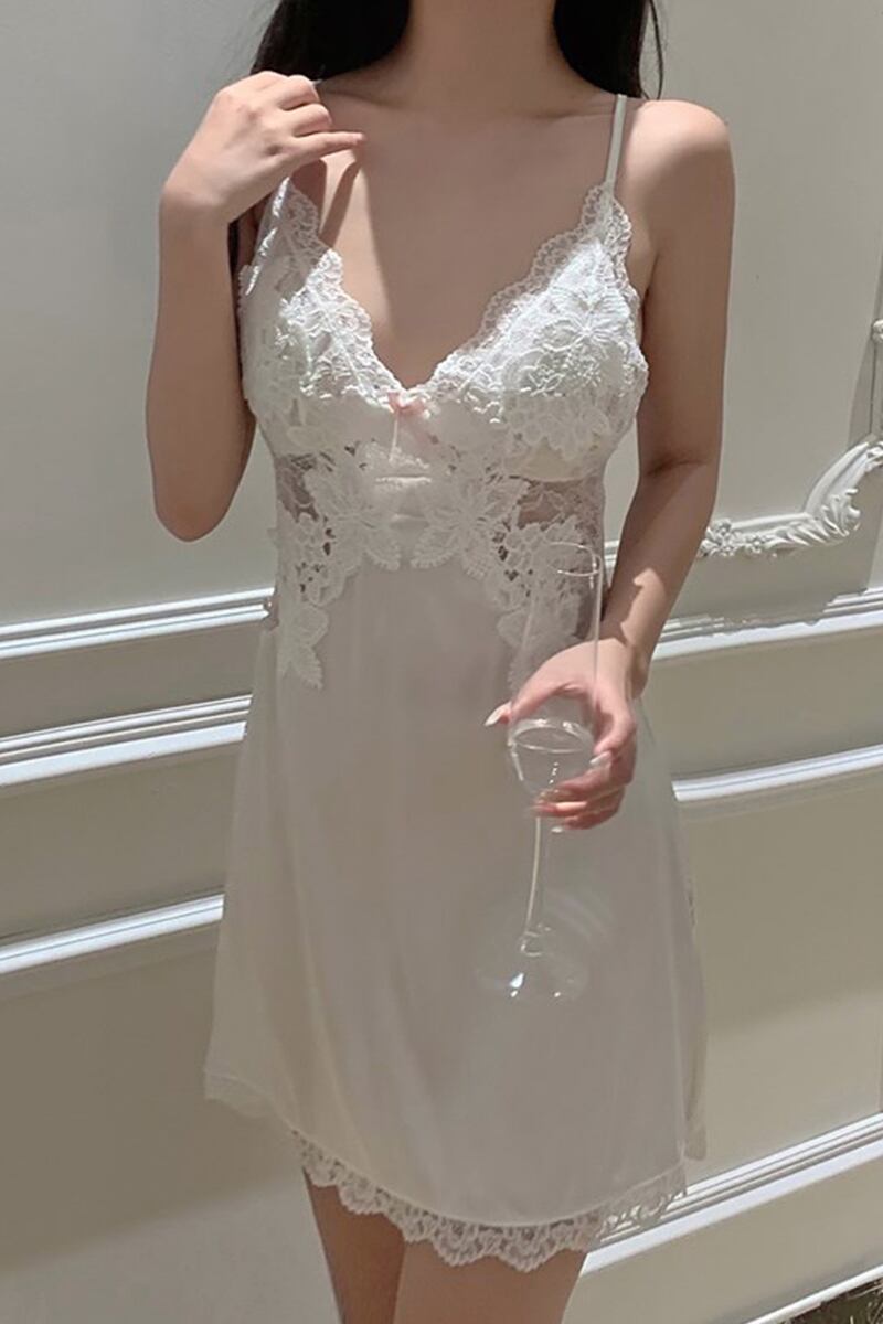 Vネックレースレディースサマー薄手ホワイトレッド 夏物 シルク ピュア セブンプリンセス25230943546