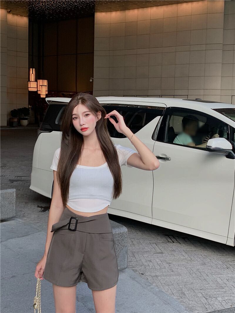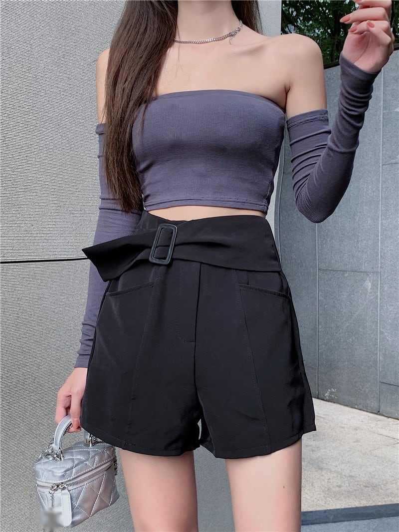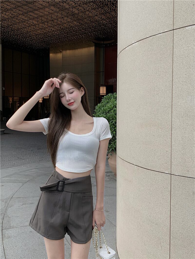 スリムハイウェストウェストAラインボタンショーツ ブルマー セブンプリンセス76730855345