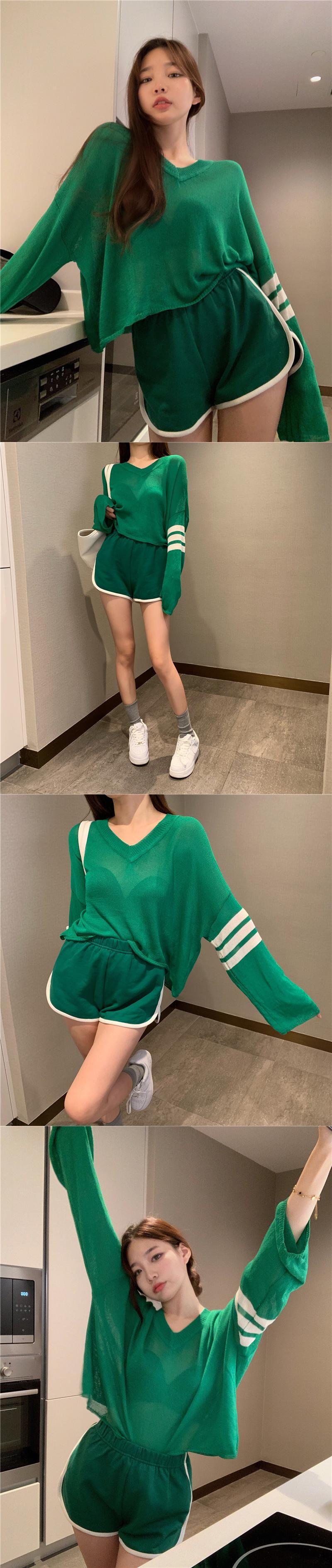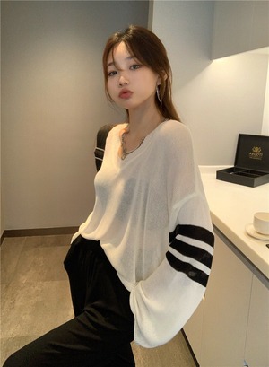 ニットセーター レディースVネックスタイルトップス サマー ロング 夏物 セブンプリンセス12337695193