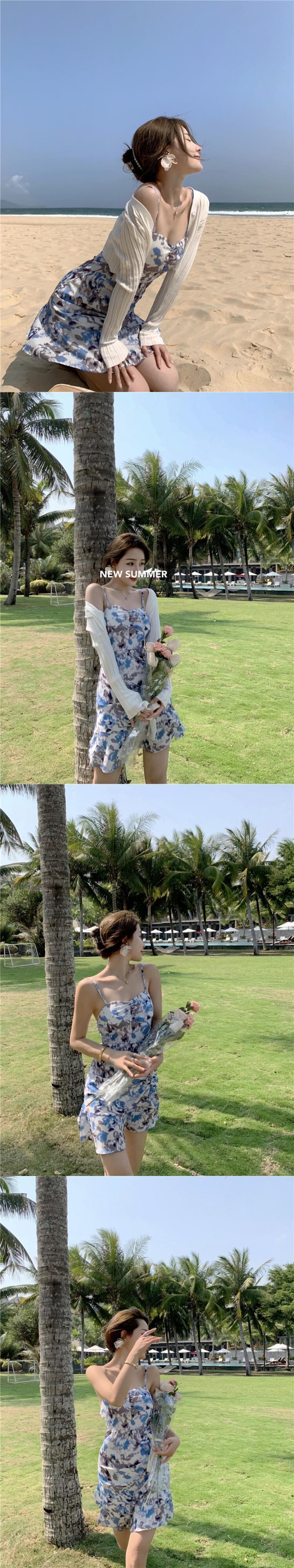 フローラルドレス サマーギャザーウェスト薄手ショートスカート 大人ガーリー スウィート キュート カジュアル 夏物 花柄 セブンプリンセス99258252907