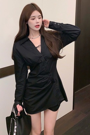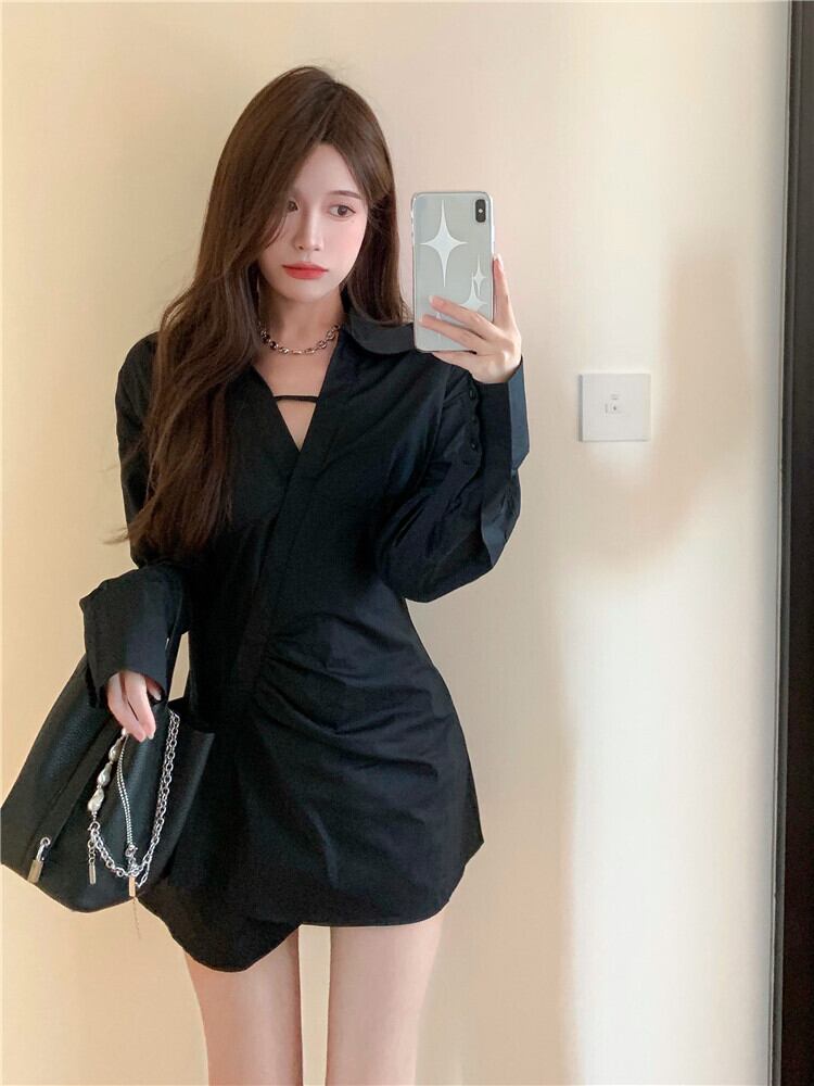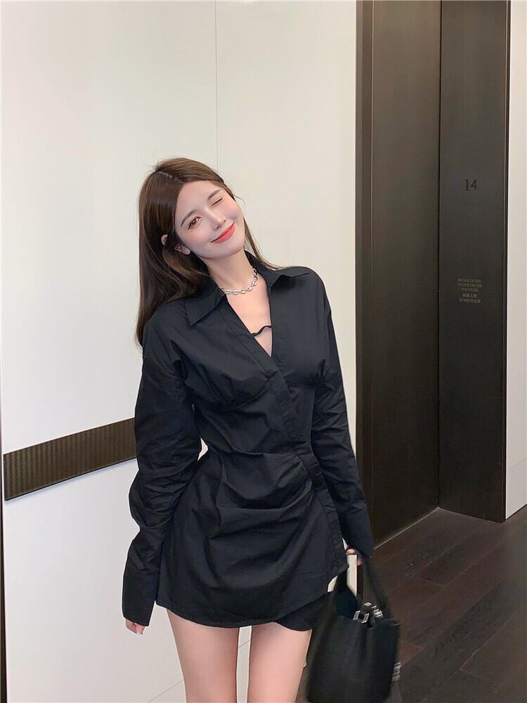 シャツ ドレス サマー薄手Vネックショートスカート ウェスト ロング 夏物 セブンプリンセス91818564171
