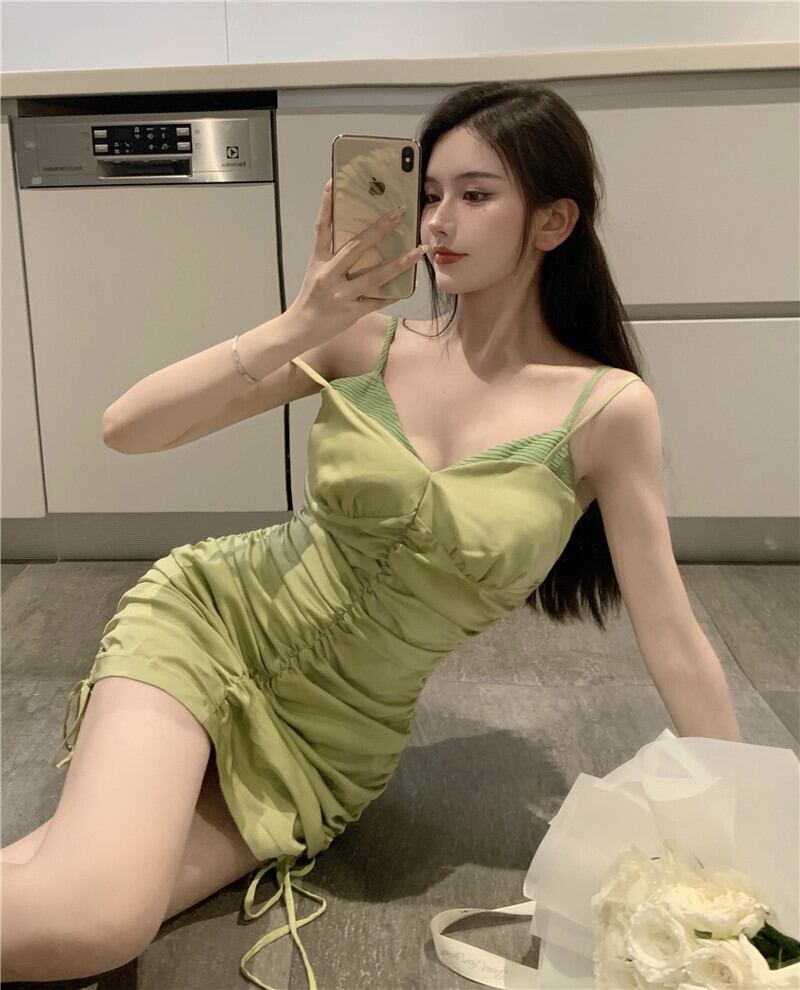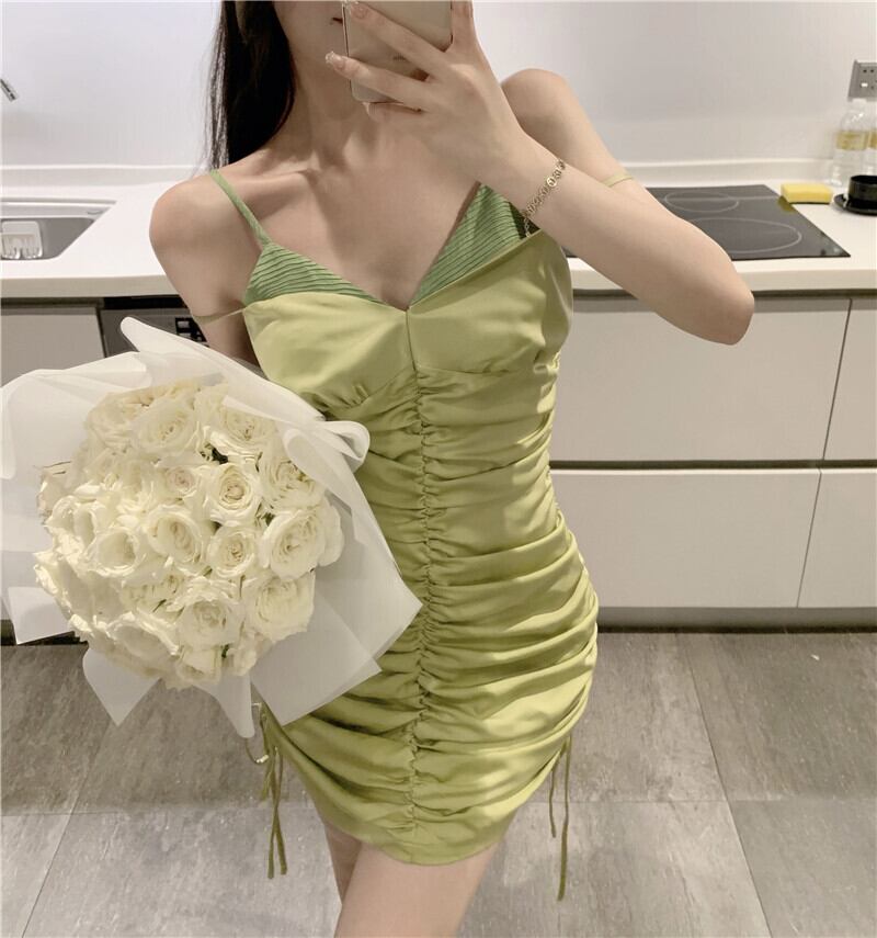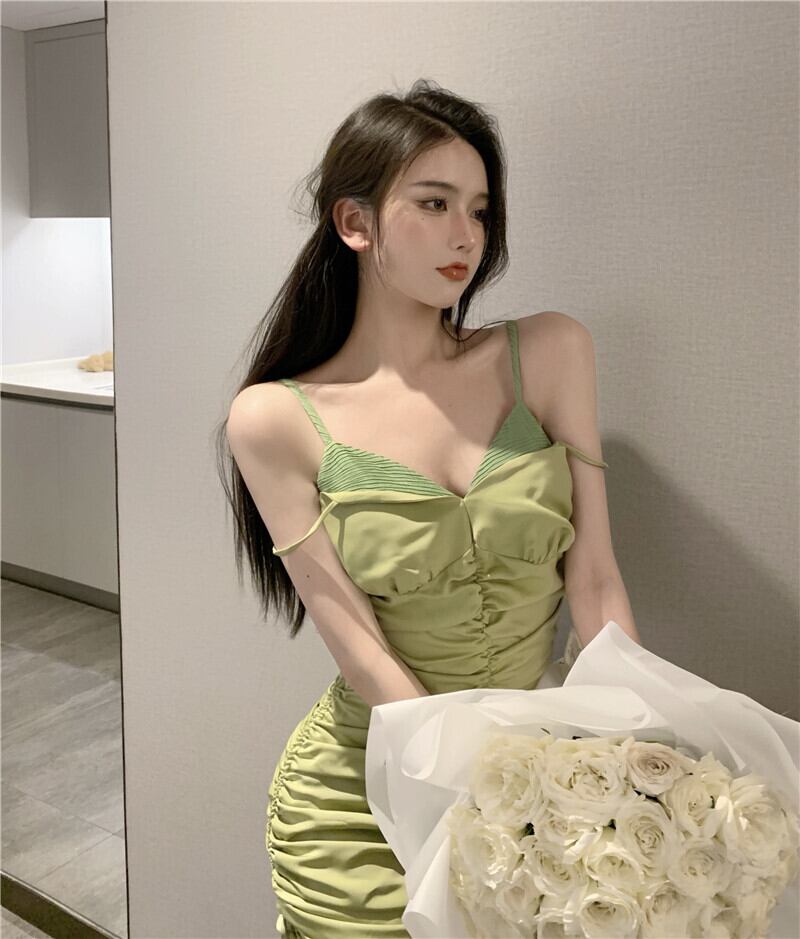 色:緑のドレス,アプリコットドレス,白いカーディガン