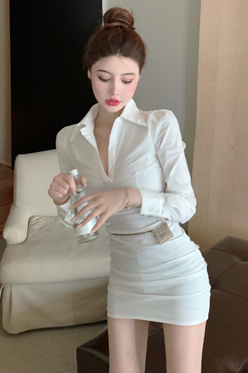 ドレス サマーウェスト薄手Vネックショートスカート カジュアルスリムホワイトシャツ 夏物 セブンプリンセス71503752513