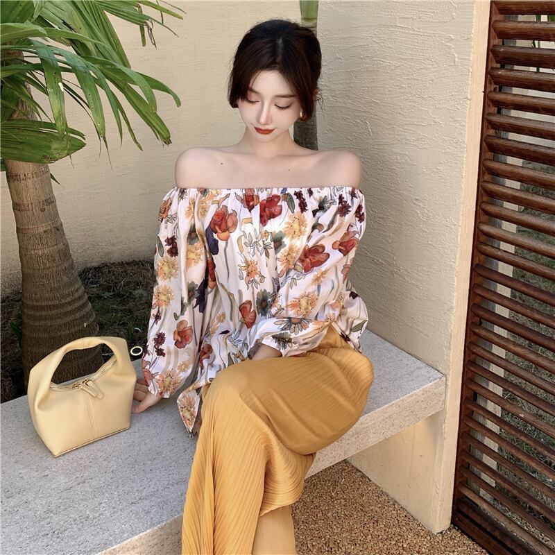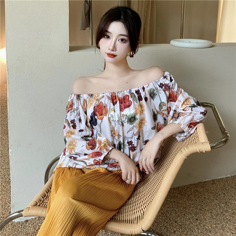 フローラルシャツ サマーレッドスタンダード薄手トップス ロング レトロ 夏物 花柄 セブンプリンセス16243763348