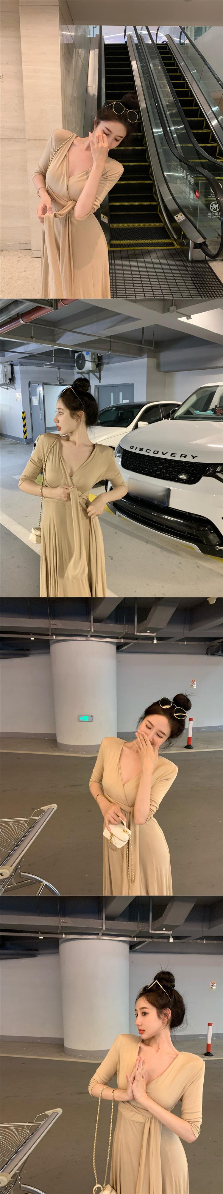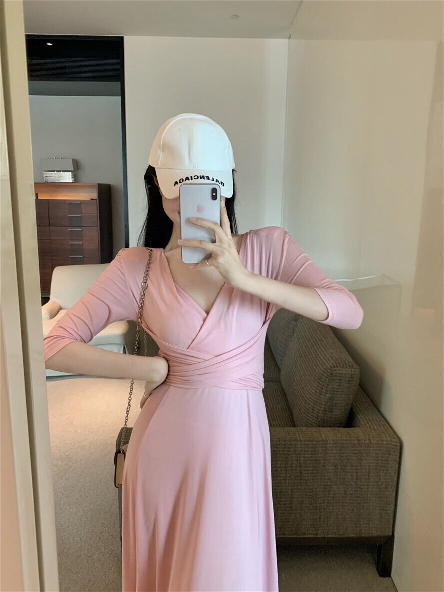 スタイルVネックドレス サマースカート ウェストスリム 夏物 セブンプリンセス19503786395