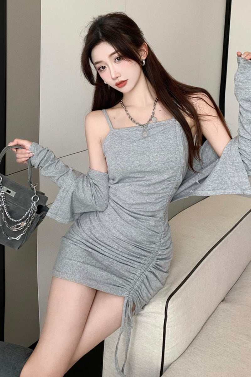 色:グレーのサスペンダースカート+カーディガン,ブラックサスペンダースカート+カーディガン