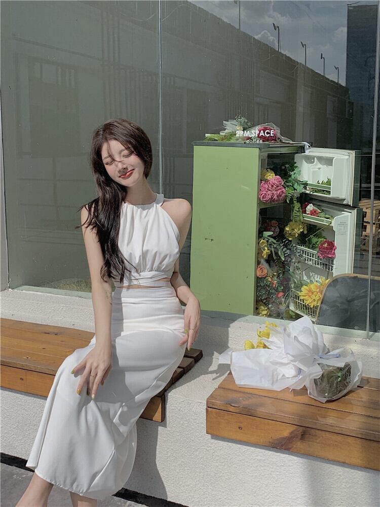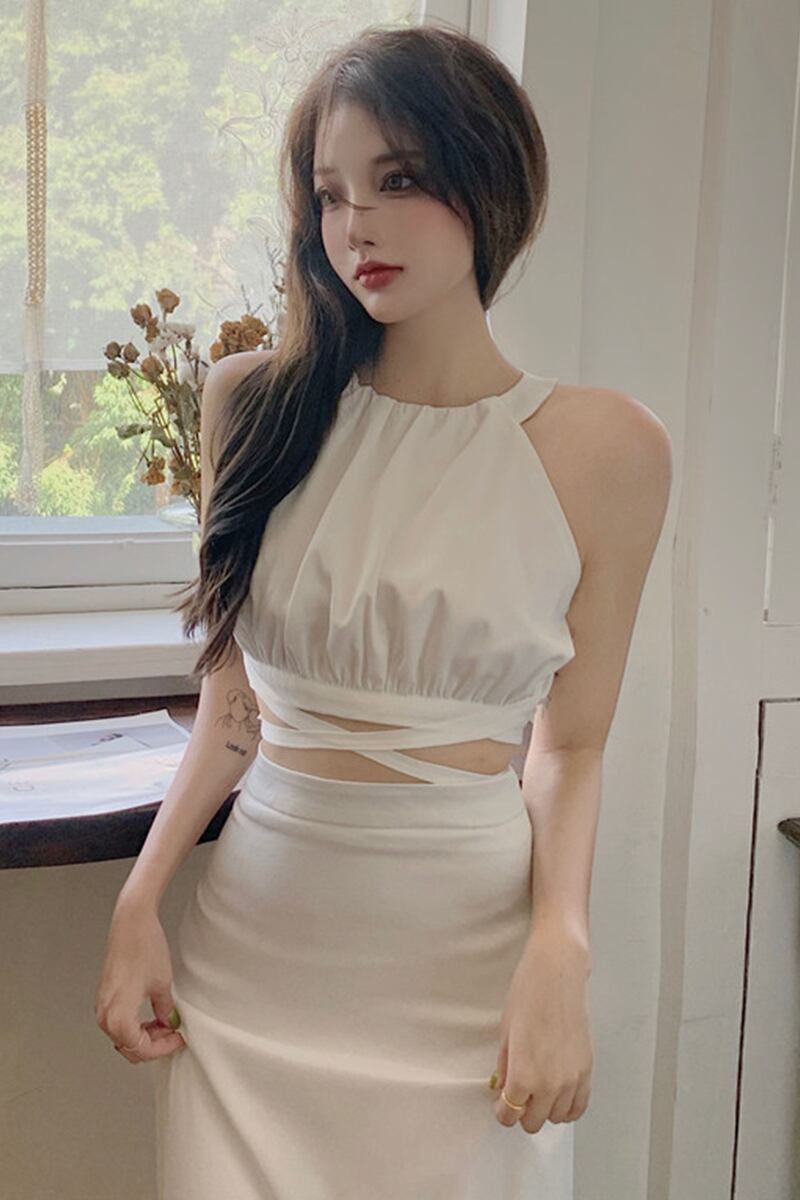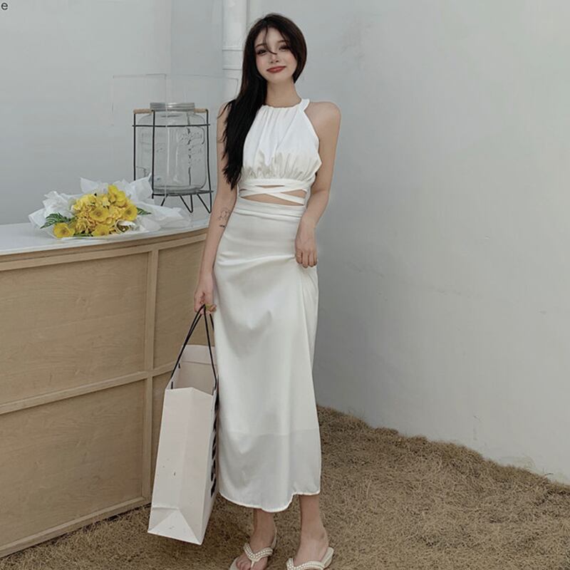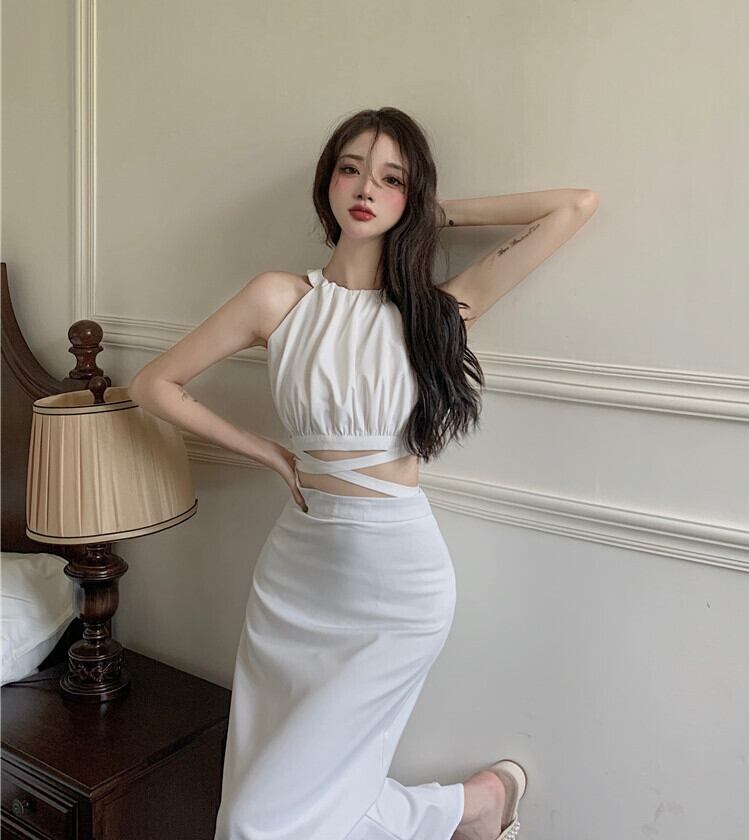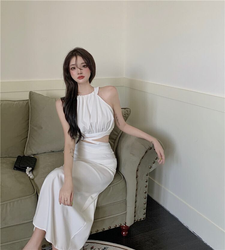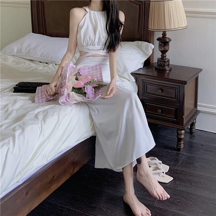スタンダードホルターレーストップス ロングスカート セット レトロ セブンプリンセス82971843981